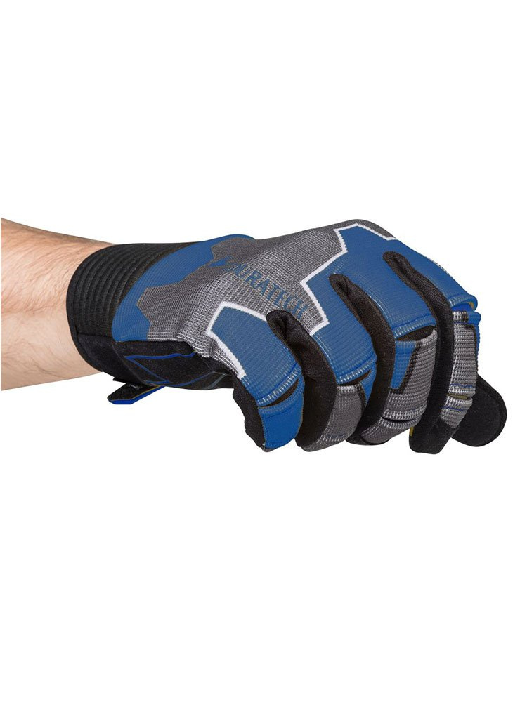 Rękawice cross Touratech MX-Ride to lekki i dobrze wentylowany model zapewniający maksymalny komfort i kontrolę podczas jazdy w trudnym terenie. Wykonane zostały z materiału odpornego na przetarcia oraz przyjemnej w dotyku syntetycznej skóry. Minimalna ilość szwów na części chwytnej oraz podwójna warstwa materiału na kciuku zmniejsza ryzyko otarć, a silikonowe wstawki zapewniają doskonały chwyt. Materiał frotte na wierzchu rękawicy sprawdzi się jako wycieraczka do gogli. Palce od wewnątrz posiadają otwory wentylacyjne zapewniające optymalną cyrkulację powietrza. Zastosowanie na kostkach palców przeszyć pozwala na lepsze dopasowanie oraz sprawniejsze operowanie osprzętem motocykla. Rękawice MX-Ride posiadają krótki mankiet z solidnym zapięciem na rzep oraz neoprenowym wykończeniem.