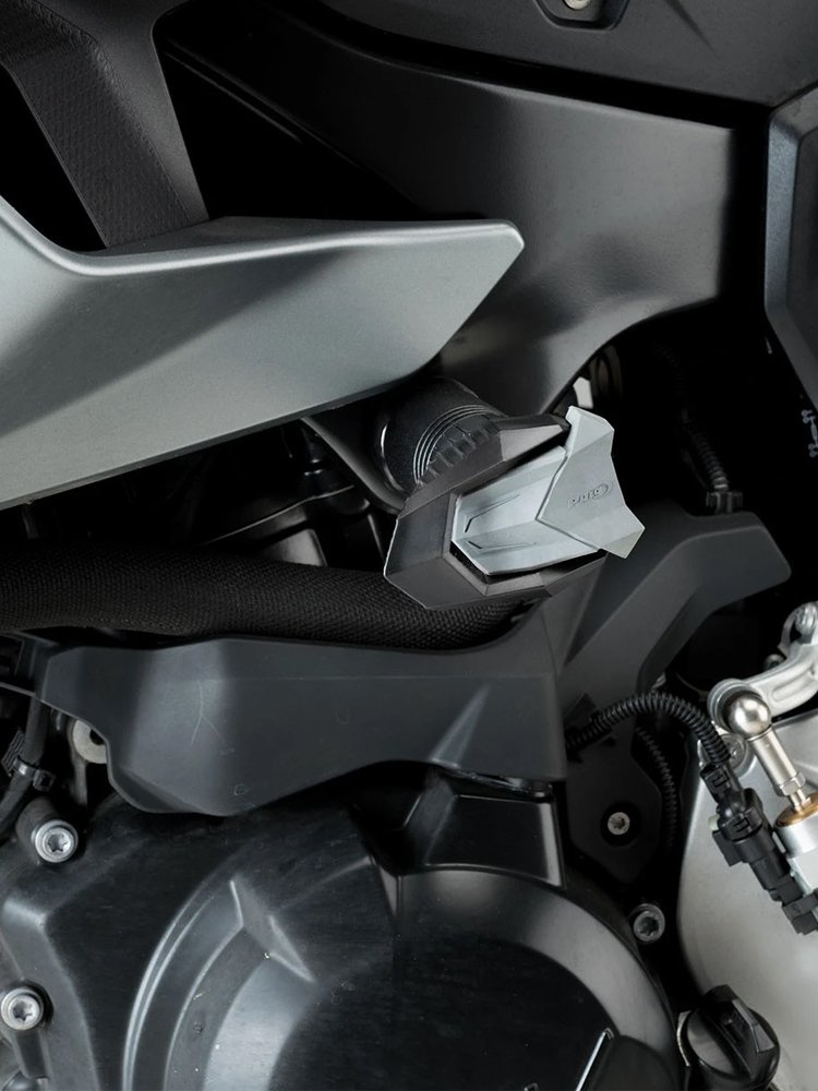 Crash pady PUIG zapewniają ochronę silnika i owiewek motocykla w przypadku nieprzewidzianych wydarzeń i upadku. Wykonane z materiału bardzo odpornego na ścieranie, nie psują wyglądu motocykla, a dodatkowo zabezpieczają pojazd. Cena dotyczy dwóch crash padów i zestawu mocującego do danego motocykla.