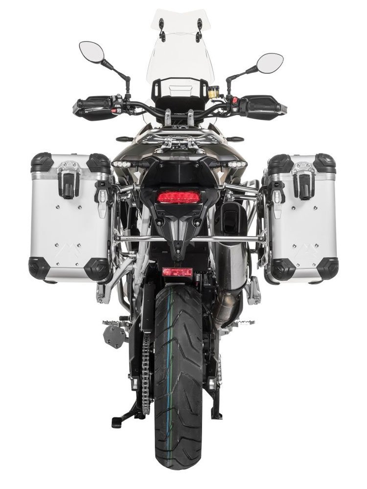 Zestaw: kufry boczne z anodowanego aluminium srebrne "And-S" Zega Evo + stelaże srebrne Touratech Triumph Tiger 900 Rally / Pro / GT / GT Pro (20-) (31+38L)