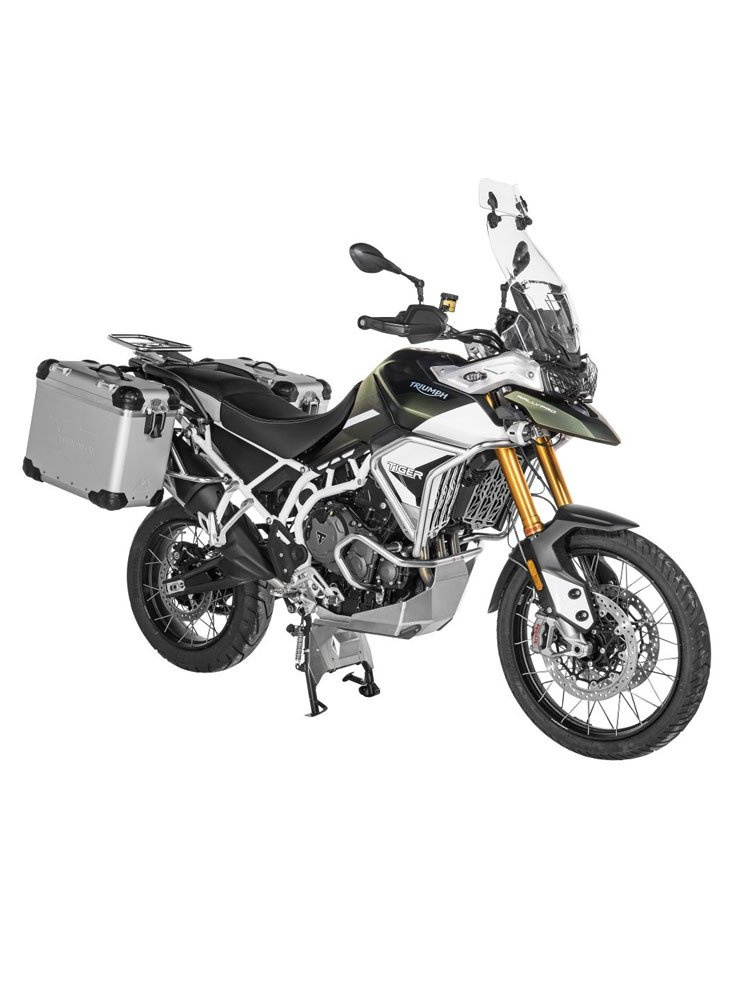 Zestaw: kufry boczne z anodowanego aluminium srebrne "And-S" Zega Evo + stelaże srebrne Touratech Triumph Tiger 900 Rally / Pro / GT / GT Pro (20-) (38+45L)