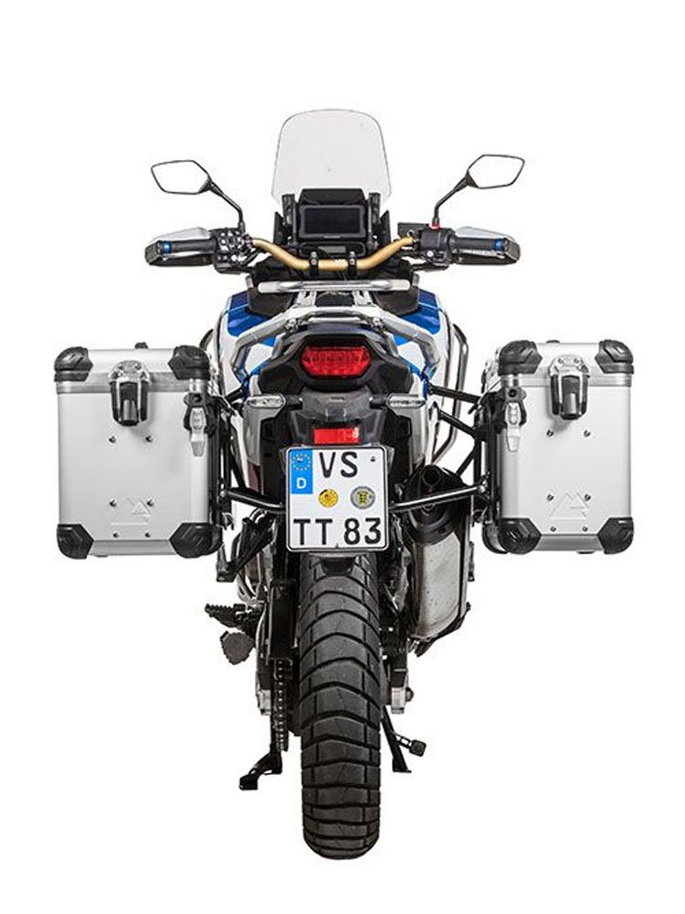 Zestaw: kufry boczne z anodowanego aluminium srebrne "And-S" Zega Evo + stelaże czarne Touratech Honda CRF1100L Africa Twin (22-)/ Adventure Sports (38+45L)