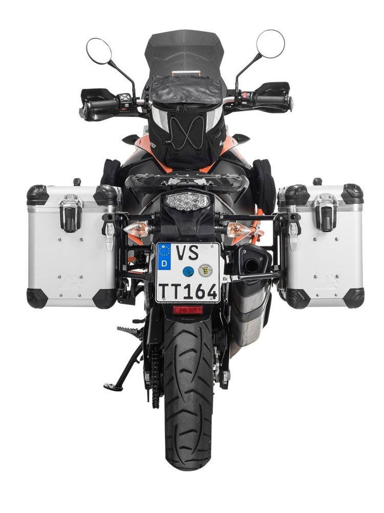 Zestaw: kufry boczne z anodowanego aluminium srebrne "And-S" Zega Evo + stelaże czarne Touratech KTM 1050 Adventure/1090 Adventure/1290 Super Adventure (-20)/1190 Adventure/R (38+45L)