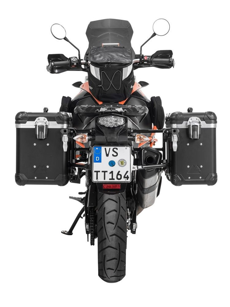 Zestaw: kufry boczne z anodowanego aluminium czarne "And-Black" Zega Evo + stelaże czarne Touratech KTM 1050 Adventure/1090 Adventure/1290 Super Adventure (-20)/1190 Adventure/R (38+45L)