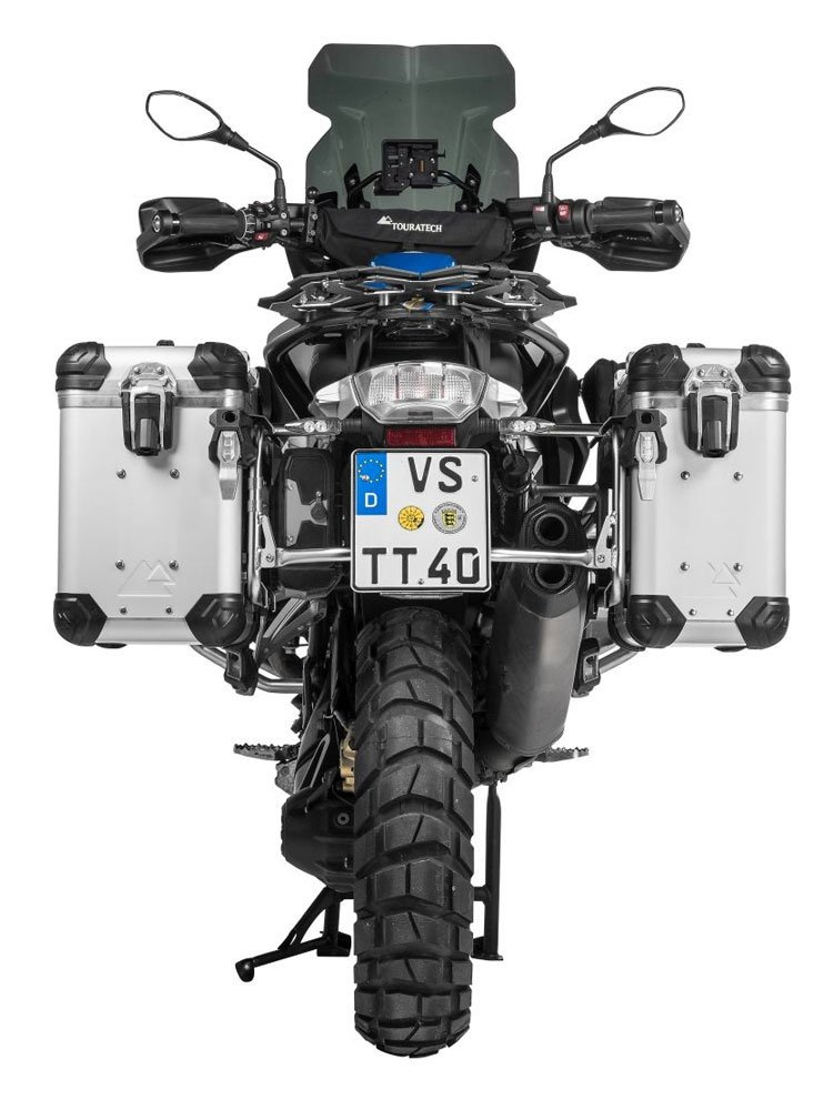 Zestaw: kufry boczne z anodowanego aluminium srebrne "And-S" Zega Evo + stelaże srebrne Touratech BMW R1250GS/ R1250GS Adventure/ R1200GS (13-)/ R1200GS Adventure (14-) (31+38L)
