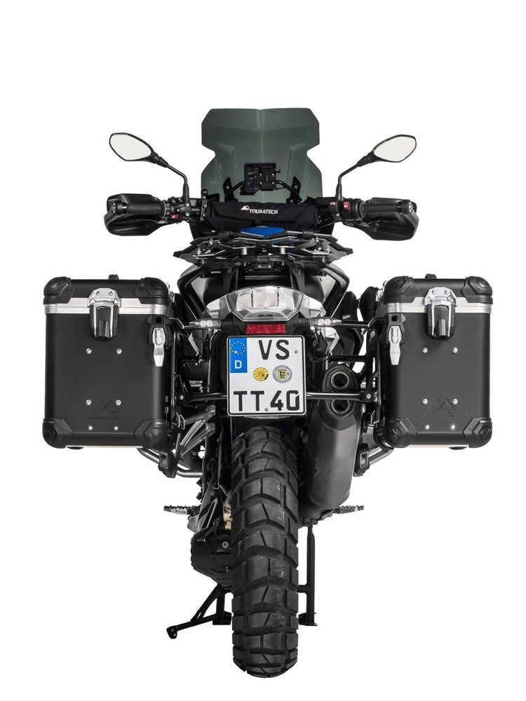 Zestaw: kufry boczne z anodowanego aluminium czarne "And-Black" Zega Evo + stelaże czarne Touratech BMW R1250GS/ R1250GS Adventure/ R1200GS (13-)/ R1200GS Adventure (14-) (38+45L)
