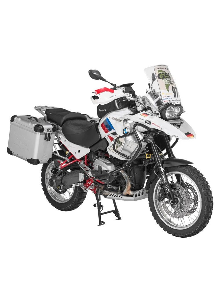 Zestaw: kufry boczne z anodowanego aluminium srebrne "And-S" Zega Evo + stelaże srebrne Touratech BMW R1200GS (-12)/R1200GS Adventure (-13) (31+38L)