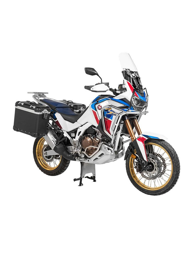 Zestaw: kufry boczne z anodowanego aluminium czarne Zega Evo X + stelaże czarne Touratech Honda CRF1100L Africa Twin (22-)/ Adventure Sports (2 x 38L)