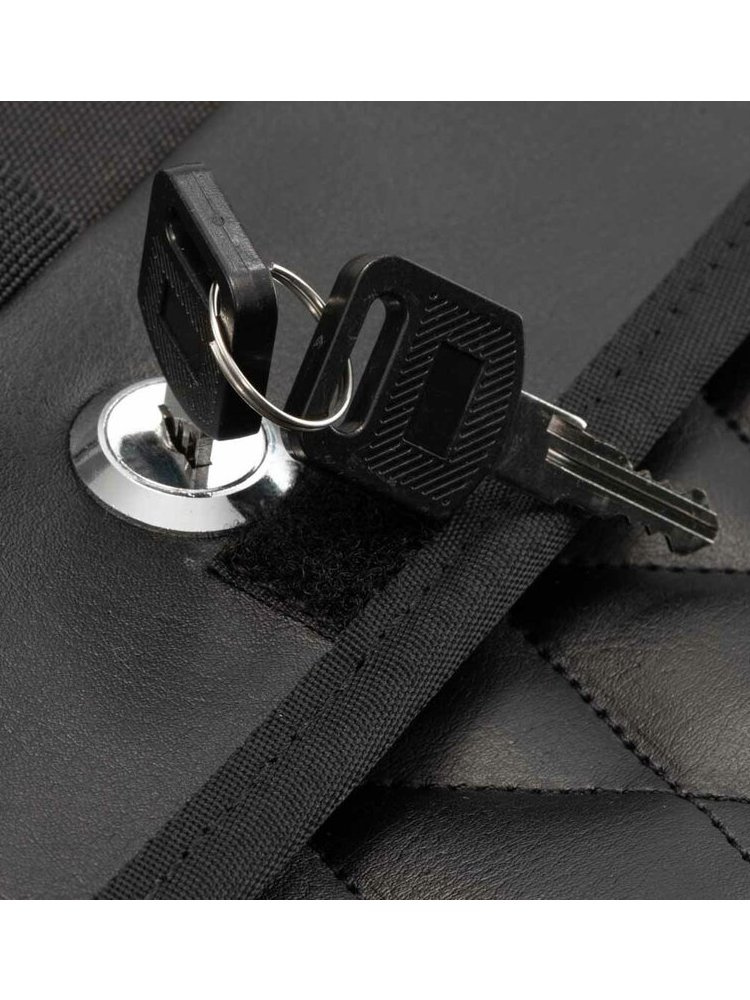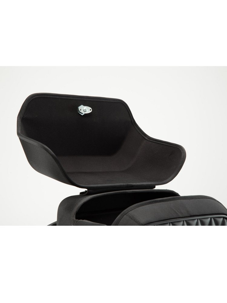 - atrakcyjny wygląd: połączenie czarnego materiału tekstylnego z poliestru 600D i czarnej sztucznej skóry z misternymi przeszyciami diamentowymi, elementy wykonane z tworzywa ABS z laminatem tekstylnym,