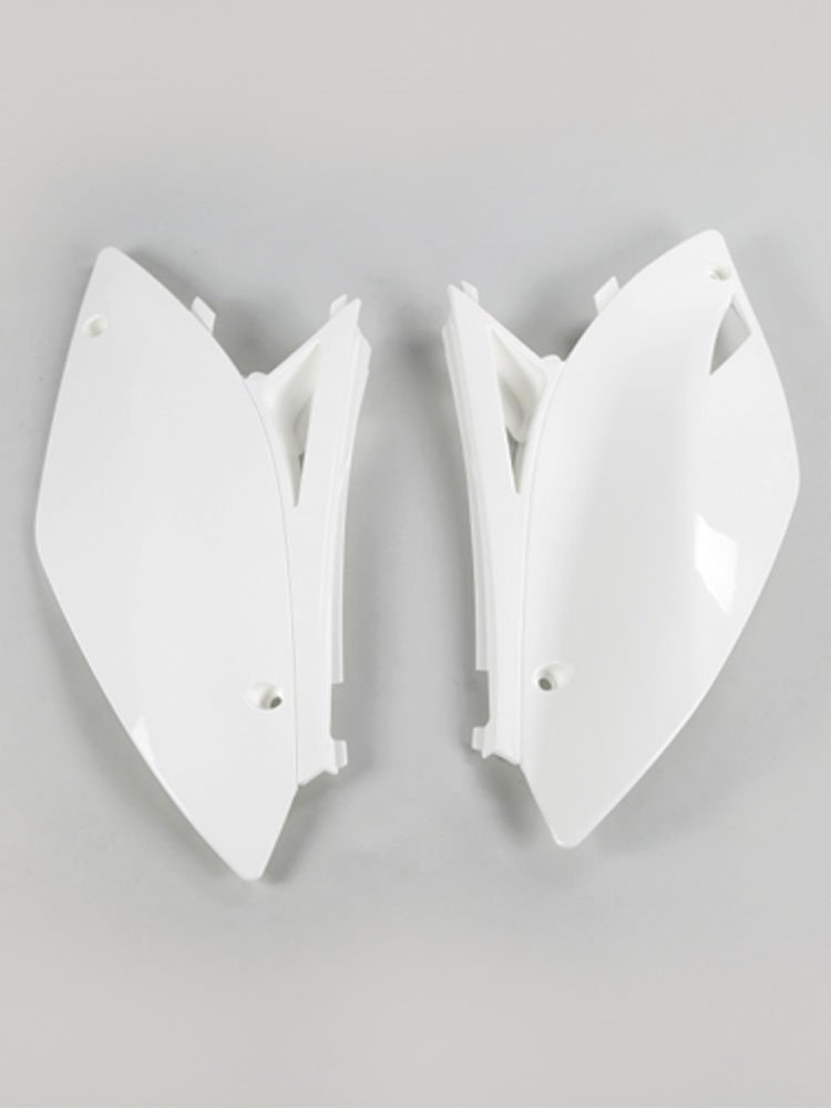 Osłony boczne tylne UFO do Kawasaki KXF 250 (09-12), KXF 450 (09-11) białe