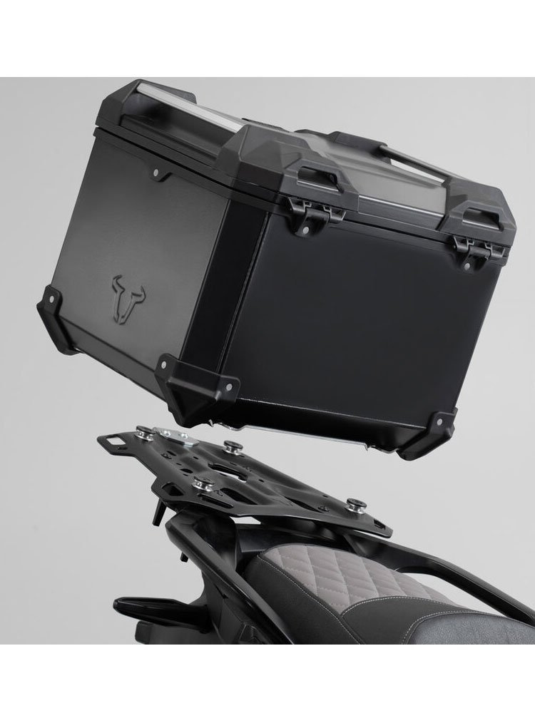 Kompletny zestaw, czyli wszystkie produkty pod jednym indeksem za pomocą których zamontujesz kufer centralny na swoim motocyklu. W skład tego zestawu wchodzą wszystkie produkty, tj.: kufer centralny TraX ADV, zamki do kufrów, płyta adaptacyjna, dedykowany do motocykla stelaż ADVENTURE-RACK. Przy rozwoju TraX ADV pojawiło się następujące wyzwanie. Zbudować kufry, które pokonają wszystkie przeszkody motocyklowej codzienności, lekkie i łatwe w obsłudze, po prostu dobre: od praktycznego zamka błyskawicznego, przez zdejmowalną pokrywę, po ergonomiczny uchwyt. TraX ADV łączą wysoką jakość z niską wagą. Ważą tylko od 4,6kg do 5,4 kg, czyli należą do grupy najlżejszych kufrów w swojej klasie.