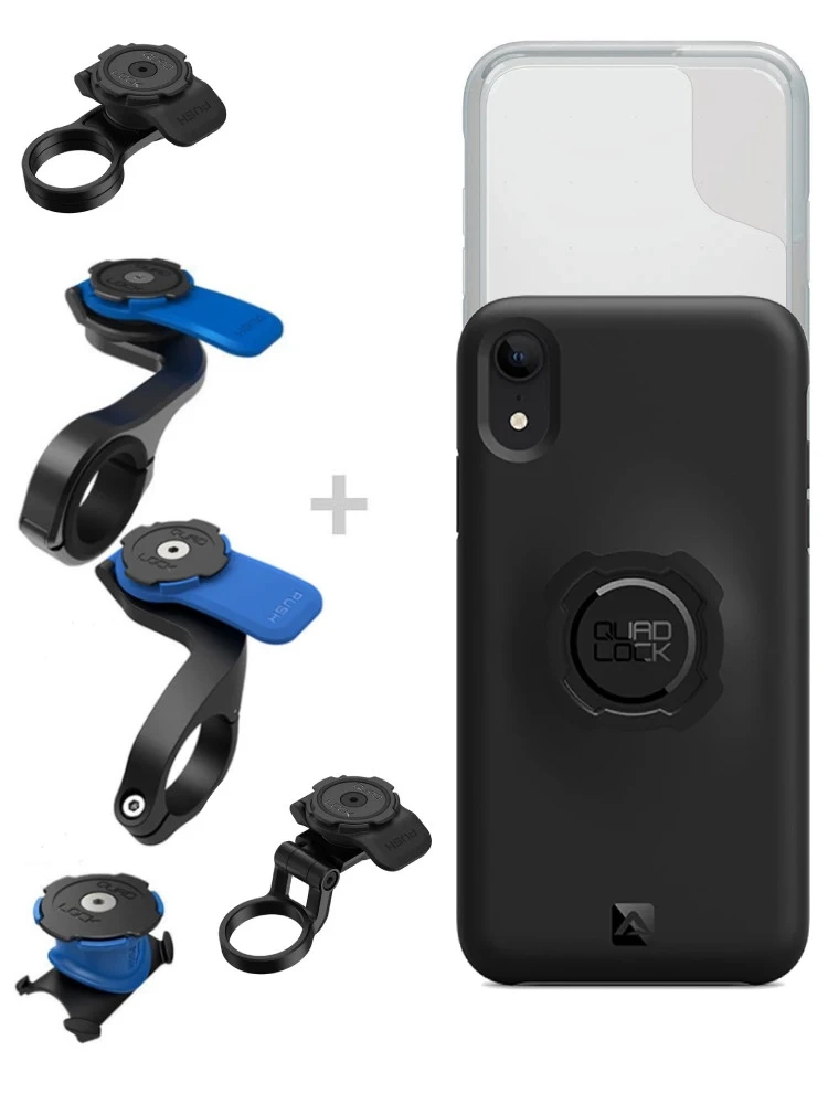Zestaw rowerowy: etui na telefon iPhone XR + pokrowiec przeciwdeszczowy + mocowanie Quad Lock