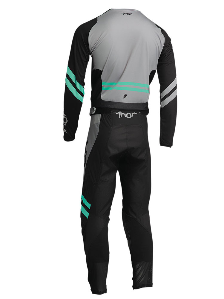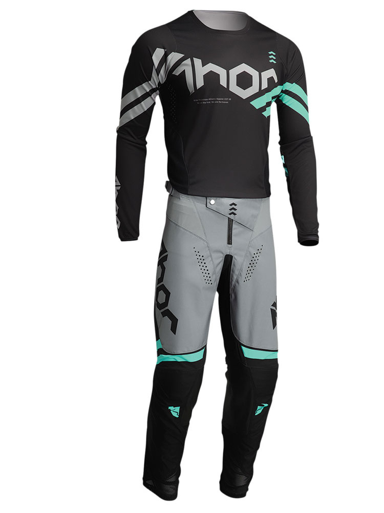 Spodnie cross Thor Pulse Cube wykonane są z wysokiej jakości materiałów zapewniających doskonałą mobilność oraz trwałość. Miejsca najbardziej narażone na zużycie wzmocnione zostały poliestrem 600D - materiałem o podwyższonej odporności na przetarcia. Wewnętrzna strona kolan zabezpieczona została licową skórą, która zapewnia optymalną przyczepność i trwałość. O solidnej konstrukcji spodni świadczą podwójne szwy na całej długości. Dzięki elastycznej tkaninie In-Motion możemy cieszyć się pełną swobodę ruchów. Spodnie wyposażone są w laserowo wycinane otwory wentylacyjne oraz meshowe panele na nogawkach, które gwarantują bardzo dobrą wymianę powietrza oraz efektywnie odprowadzają wilgoć. Proces ten wspomagany jest również przez oddychającą, wewnętrzną podszewkę. Idealne dopasowanie zapewnia podwójny system regulacji w pasie na rzep. Zaletą spodni są wyprofilowane kolana, które pozwalają przyjąć wygodną pozycję do jazdy. Spodnie cross kolorystycznie dopasowane są do dedykowanych bluz enduro z kolekcji Pulse.