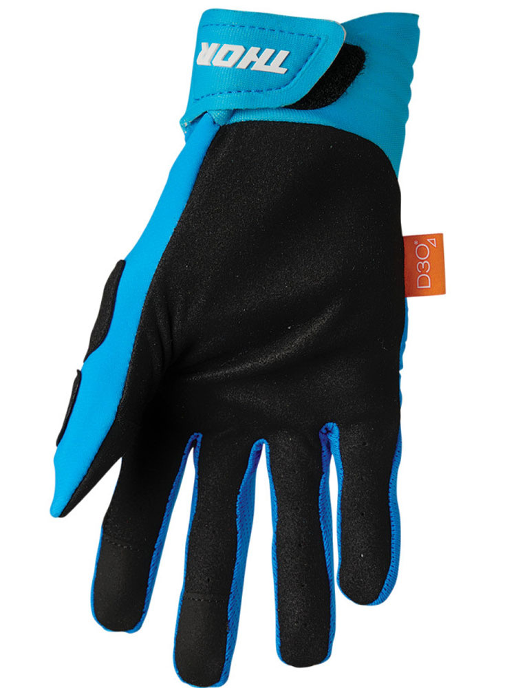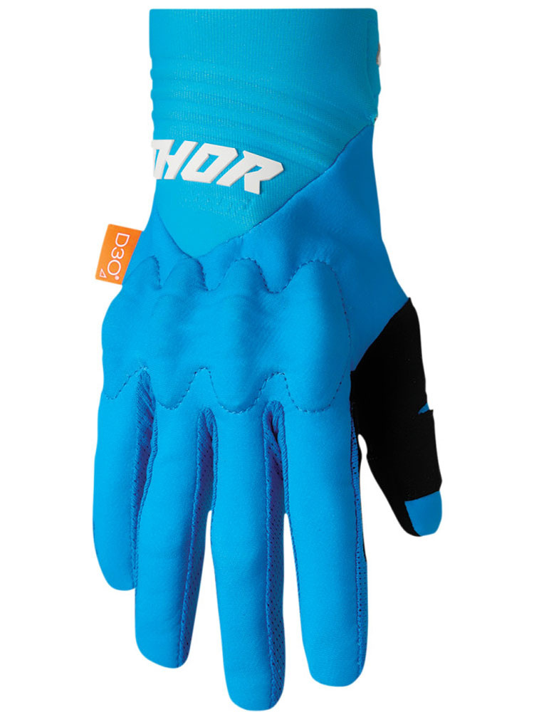Rękawice cross Thor Rebound zapewniają wysoki komfort i bardzo dobrą ochronę podczas jazdy. Wierzch rękawicy wykonany jest z bardzo elastycznej i oddychającej tkaniny Airprene, a spód z perforowanego materiału Clarino. Zastosowanie tych materiałów sprawiło, że powstał produkt zapewniający doskonałą mobilność, bardzo dobrą przyczepność i świetne wyczucie kierownicy. W celu zwiększenia przepływu powietrza między palcami umieszczono przewiewne, meshowe panele. Rękawice wyposażone są w miękkie ochraniacze kostek D3O, które pod wpływem nagłego uderzenia twardnieją i pochłaniają jego energię. Producent wzmocnił również kciuk dodatkową warstwą materiału. Mocne zapięcie na rzep w nadgarstku bezpiecznie utrzymuje rękawicę na dłoni. Rękawice posiadają na palcach specjalne panele, które pozwalają na obsługę ekranów dotykowych bez ich ściągania.