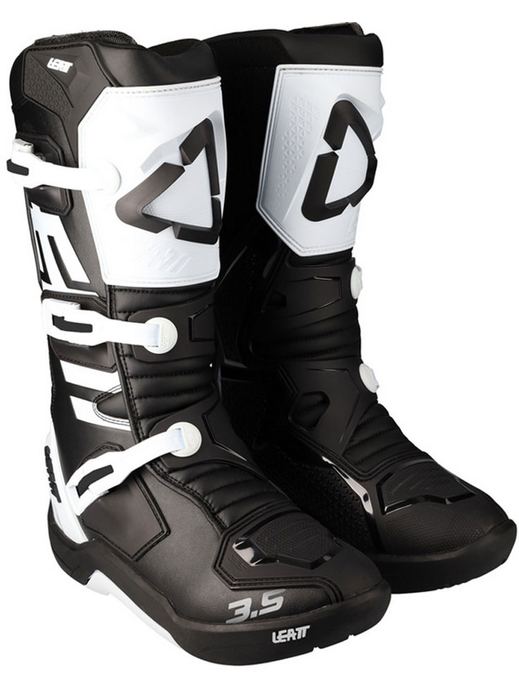 Buty enduro Leatt 3.5 łączą w sobie świetny design i bezpieczeństwo zapewniające komfortową jazdę w ekstremalnych warunkach. Wygodny krój idealnie dopasowuje się do kształtu stopy, nie uwiera i sprawia, że wszystko pozostaje na swoim miejscu. Buty zapinane są na polimerowo-stalowe klamry opartym na systemie SlideLock - jednokierunkowym zamykaniu z automatyczną blokadą poprawiającą bezpieczeństwo użytkowania. Płaska wewnętrzna strona buta pozwala na lepsze wyczucie motocykla a niski profil obuwia ułatwia operowanie dźwignią zmiany biegów. Pogrubiona podeszwa DualZone przystosowana została do użytkowników, którzy preferują jazdę na palcach. Wewnętrzne wyściełano miękką poliestrową tkaniną.