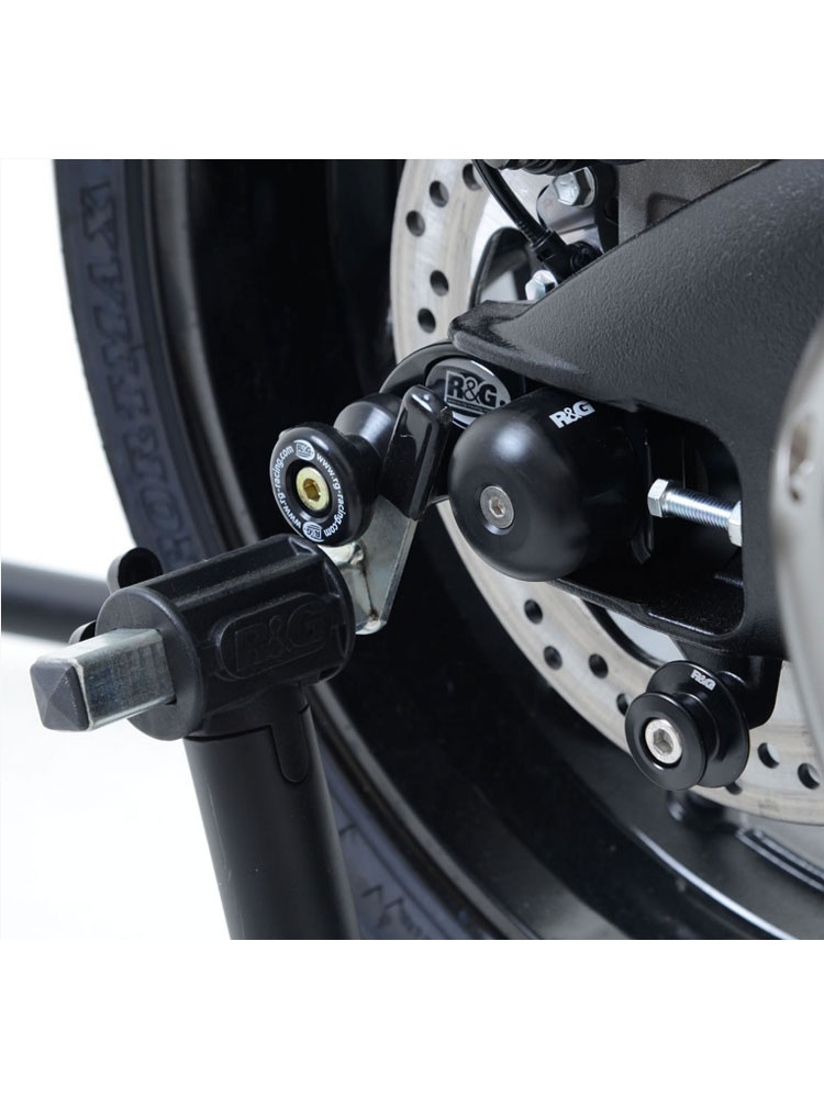 - Dzięki temu rozwiązaniu, idealnie pełnią funkcje klasycznych rolek wahacza służących do podnoszenia motocykla na podnośniku oraz dodatkowo chronią wahacz podczas upadku.
