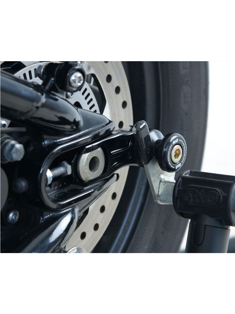 - Dzięki temu rozwiązaniu, idealnie pełnią funkcje klasycznych rolek wahacza służących do podnoszenia motocykla na podnośniku oraz dodatkowo chronią wahacz podczas upadku.