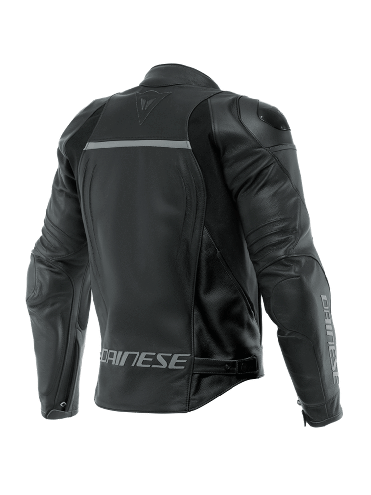 Kurtka Dainese Racing 4 to sportowa kurtka motocyklowa, gwarantująca bezpieczeństwo i komfort użytkowania na najwyższym poziomie. Wyróżnia się wytrzymałością, dzięki zastosowaniu odpornego na przetarcia i rozdarcia materiału w postaci skóry bydlęcej oraz odpornej na wszelkiego rodzaju plamy oleju i wodę tkaniny S1. Kurtka Racing 4 oferuje znakomitą ochronę podczas motocyklowej podróży na którą składają się certyfikowane ochraniacze ramion i łokci, zapewniające dobrą widoczność w każdych warunkach pogodowych wstawki odblaskowe oraz opracowane przez firmę Dainese aluminiowe osłony na ramionach. Istnieje również możliwość montażu opcjonalnego protektora pleców G1 i G2. O swobodę ruchów zadbają wstawki z materiału Microelastic 2.0, natomiast regulacja w pasie gwarantuje idealne dopasowanie. Mocną stroną modelu Racing 4 jest perfekcyjna cyrkulacja powietrza, dzięki zastosowaniu otworów wentylacyjnych na klatce piersiowej i w bocznej strefie oraz wyściółce Nanofeel, posiadającej właściwości antybakteryjne. Kurtkę bez problemu możemy spiąć z dedykowanym modelem spodni motocyklowych za sprawą specjalnego zamka błyskawicznego. Cztery kieszenie pozwolą na bezpieczny transport drobnych, podręcznych rzeczy.