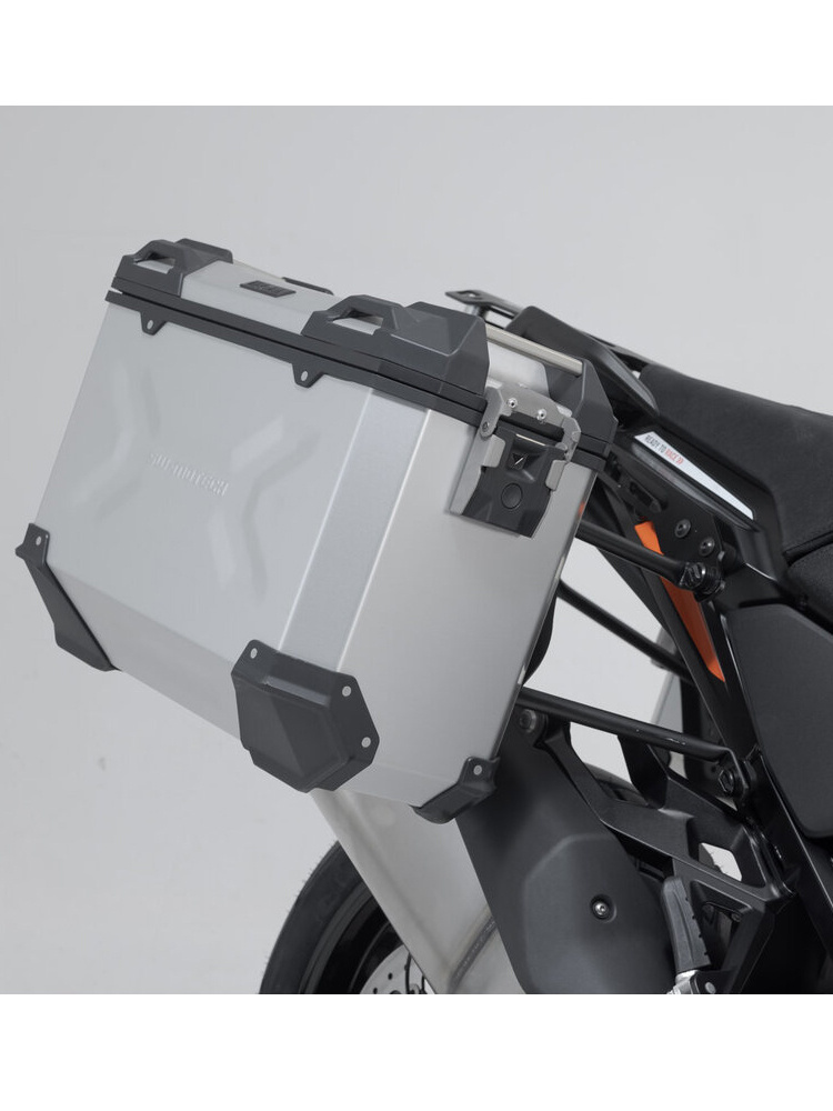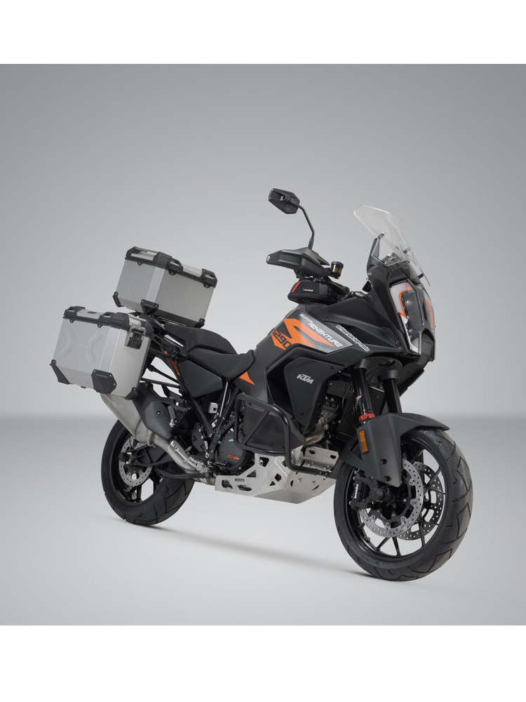 Zestaw: kufry boczne + kufer centralny TRAX ADV + stelaże SW-MOTECH do motocykla KTM 1290 Super Adventure R / S (21-) srebrne