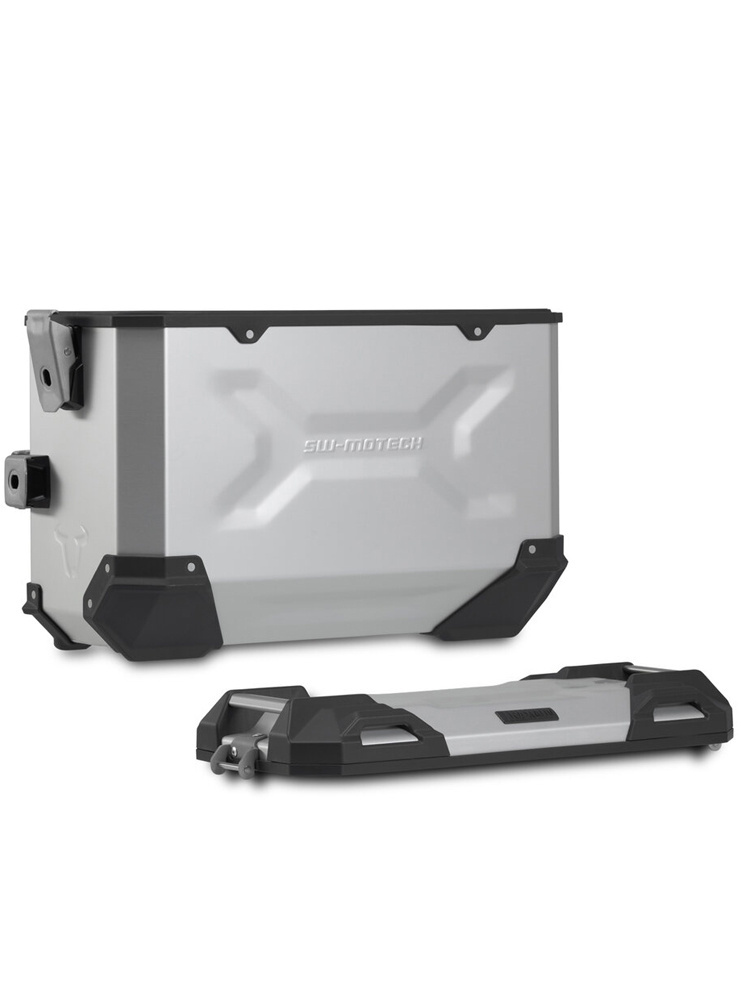 Wytrzymałe aluminiowe kufry TRAX ADV sprawiają, że czujesz się jak w domu na każdym odcinku drogi: wytłoczone wzory zwiększają stabilność spawanego aluminium o grubości 1,5 milimetra. Całkowicie zdejmowana pokrywa z uchwytami wykonanymi z anodyzowanego aluminium oraz zapięcie błyskawiczne ułatwiają załadunek i rozładunek bagażu motocyklowego; fazowana krawędź boczna zapewnia duży prześwit podczas pokonywania zakrętów. Stelaż i wielkość kufrów są idealnie dopasowane do tylnego kształtu i układu wydechowego motocykla. Przy rozwoju TRAX ADVENTURE pojawiło się następujące wyzwanie. Zbudować kufry, które pokonają wszystkie przeszkody motocyklowej codzienności, lekkie i łatwe w obsłudze, po prostu dobre: od praktycznego zamka błyskawicznego, przez zdejmowalną pokrywę, po ergonomiczny uchwyt. TRAX ADVENTURE łączą wysoką jakość z niską wagą. Ważą tylko od 4,6kg do 5,4 kg, czyli należą do grupy najlżejszych kufrów w swojej klasie.