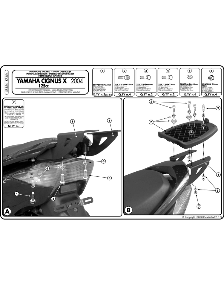 Stelaż bez płyty pod kufer centralny Monolock do Yamaha Cignus X 125 (04 -15)