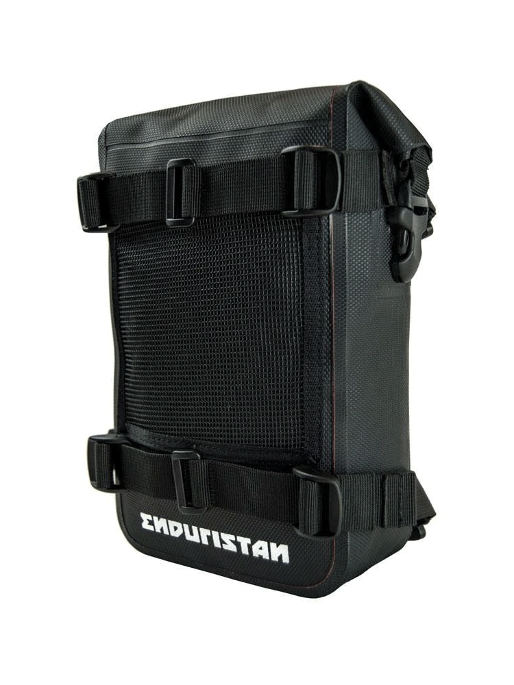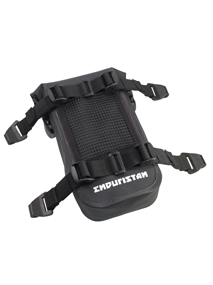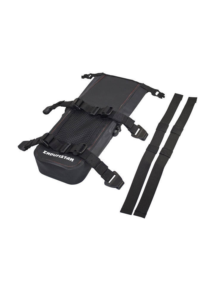 Endustrian Fender to torba motocyklowa, dedykowana do montażu na błotnik naszego motocykla. Jest idealnym miejscem do przechowywania drobnych przedmiotów, które mogą być niezwykle przydatne w kryzysowych sytuacjach podczas wycieczki motocyklowej. Przykładowo w torbie można przechowywać m.in. zapasowe dętki, klucze czy nawet podręczną apteczkę. Za pomocą czterech haków w bezpieczny sposób mocujemy torbę do błotnika, natomiast dwie zewnętrzne plastikowe pętle, umożliwiają montaż dodatkowego sprzętu do torby. Warto w tym miejscu powiedzieć, że Fender jest kompatybilna z torbą narzędziową Tool Pack i dodatkowo możemy ją przyłączyć do sakwy z serii Blizzard. Na uwagę zasługuje również czerwona podszewka, odpowiedzialna za zwiększenie poziomu widoczności. Zewnętrzna kieszeń została wykonana z oddychającego materiału, w postaci siatki. Pojemność 2,9 litra gwarantuje wygodne przechowywanie podręcznych akcesoriów, dzięki czemu podróż motocyklem przebiega w komfortowych warunkach. Wodoodporność sprawia, że torbę Fender można użytkować nawet podczas obfitych opadów deszczu. Łatwość w czyszczeniu i pielęgnacji, to dodatkowy atut Enduristan Fender, zwłaszcza podczas typowej jazdy enduro w terenie.