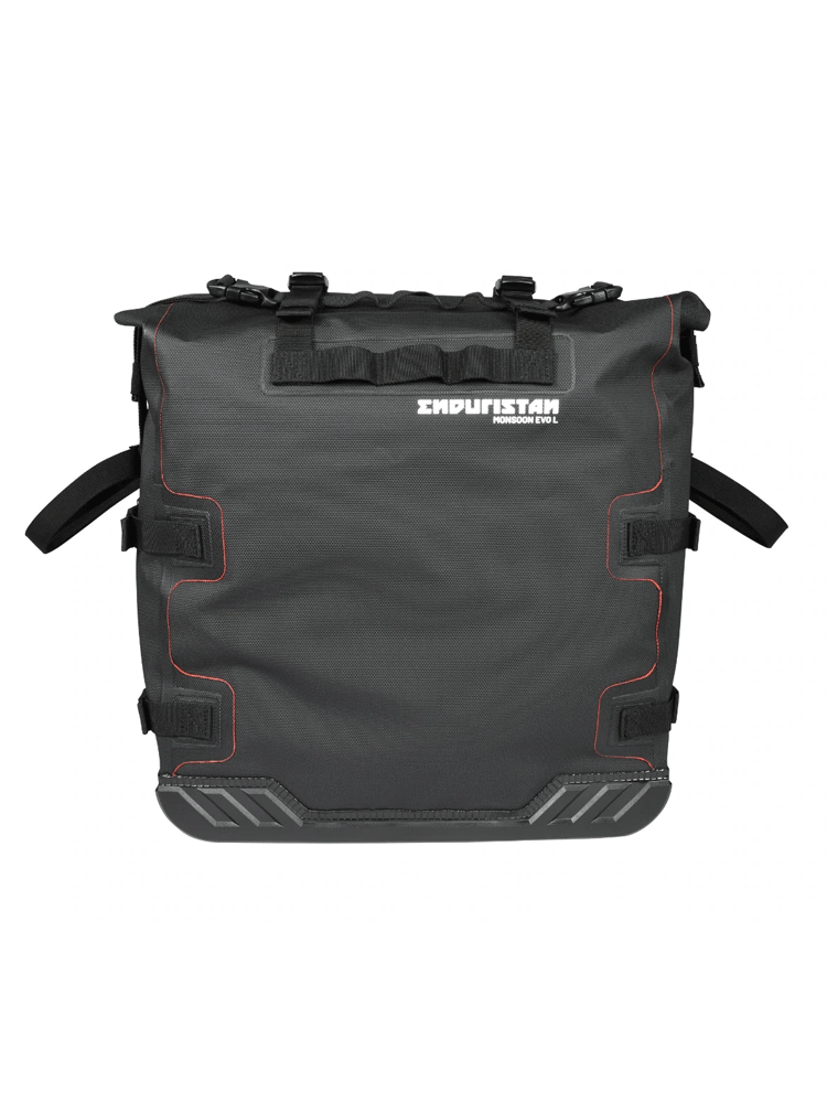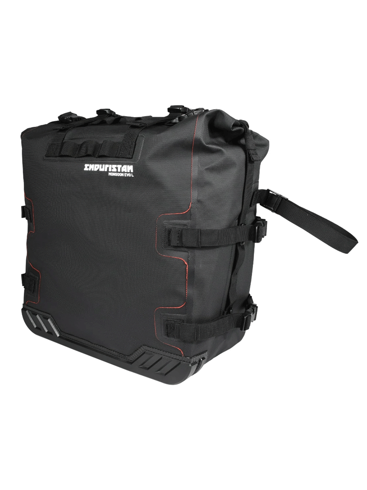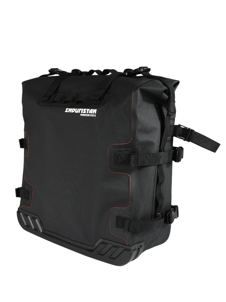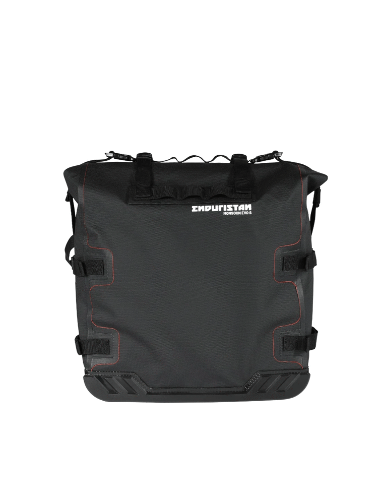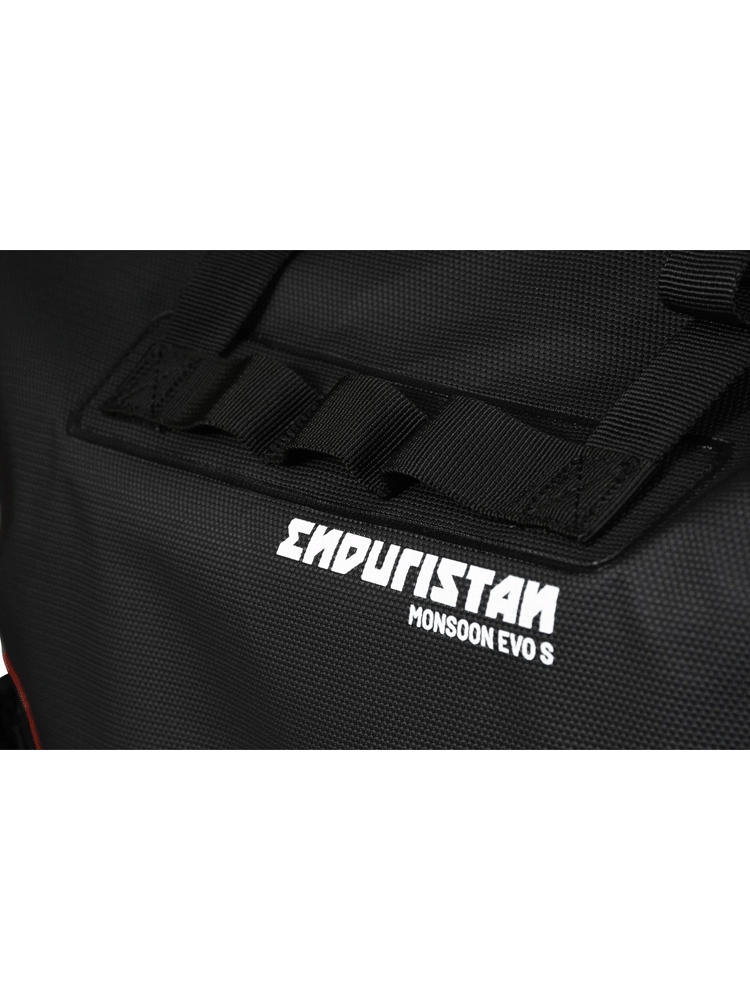 Monsoon Evo to sakwa motocyklowa, opracowana z myślą o najbardziej wymagających podróżach motocyklowych. Wykonana z niezwykle wytrzymałego i odpornego na przetarcia materiału, w postaci trójwarstwowej tkaniny, która nadaje całej konstrukcji odporność na wodę, błoto oraz wszelkiego rodzaju pyły. Montowana za pomocą stelaży sakwa wyróżnia się stosunkowo niską wagą, dzięki czemu podróżowanie motocyklem będzie komfortowe, nawet przy dużej ilości bagażu. Jeśli pojemność torby nie jest wystarczająca, istnieje możliwość połączenia sakwy z torbą na błotnik Enduristan Fender Bag. Można również zamontować w zewnętrznej części dodatkowe kabury motocyklowe na puszkę lub butelkę. Monsoon Evo zaopatrzono w innowacyjne uchwyty montażowe, umożliwiające mocowanie torby do stelaży bez konieczności stosowania płyt montażowych. Standardem w torbach od marki Enduristan jest wewnętrzna podszewka w kolorze czerwonym, zwiększająca widoczność wnętrza całej sakwy. Sama torba oferuje łatwy montaż i demontaż, tym samym zwiększając ogólny komfort użytkowania. W celu zapobiegania próbom kradzieży, sakwę można wyposażyć w dodatkową kłódkę lub blokadę motocyklową. Dwa rzędy szlufek cargo spełnią swoją rolę wzorowo, jeśli użytkownik będzie chciał przymocować dodatkowy sprzęt do torby Monsoon Evo.