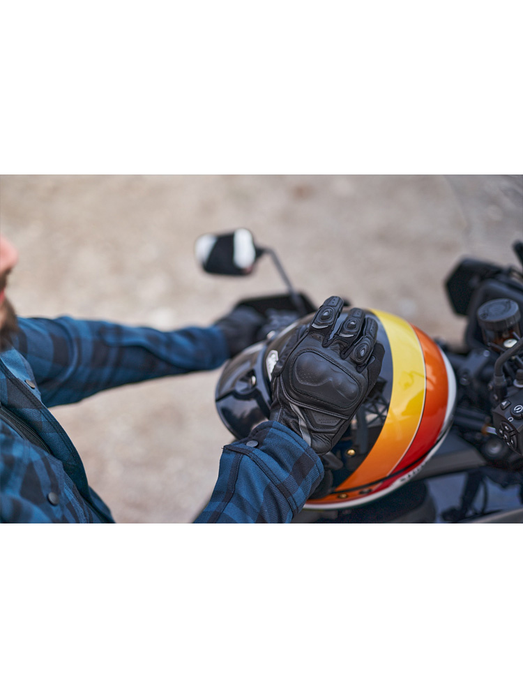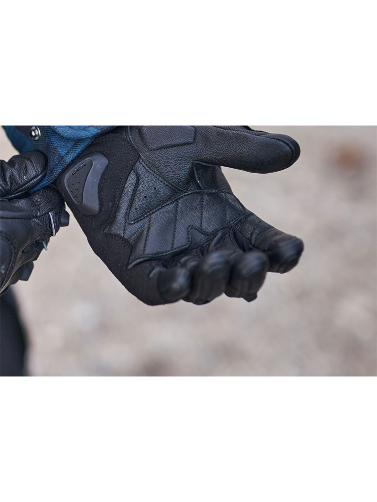 Shima Spark 2.0 to krótkie, letnie rękawice motocyklowe wykonane z przewiewnej perforowanej na mankiecie oraz między palcami skóry która oprócz wyjątkowego komfortu jazdy, oferuje również ochronę przed wszelkiego rodzaju przetarciami. Warto również dodać że w miejscach najbardziej narażonych na rozerwanie zrezygnowano z tradycyjnych szwów i połączeń. Elastyczne panele na palcu wskazującym i środkowym pozwalają na pełną swobodę ruchu a specjalna konstrukcja kciuka Grip+™ 3D udoskonala ergonomię, znacznie poprawiając chwyt w rękawicy. Dodatkową przyczepność zapewniają silikonowe wstawki na dłoni zabezpieczające przed niekontrolowanym ześlizgnięciem się dłoni z manetki. Twarde protektory na kostkach oraz palcach wykonane zostały w nowej, autorskiej technologii która absorbuje energię powstałą podczas uderzenia. Rękawice Spark 2.0 to idealny towarzysz podróży w bardzo przystępnej cenie.