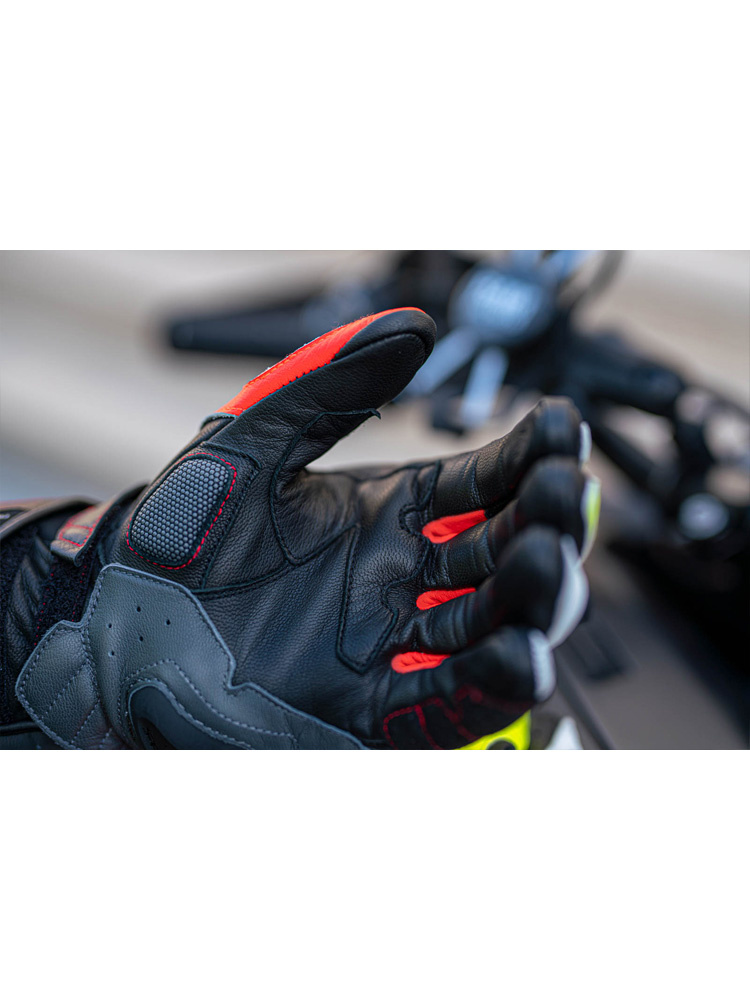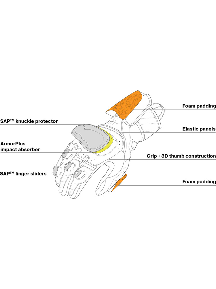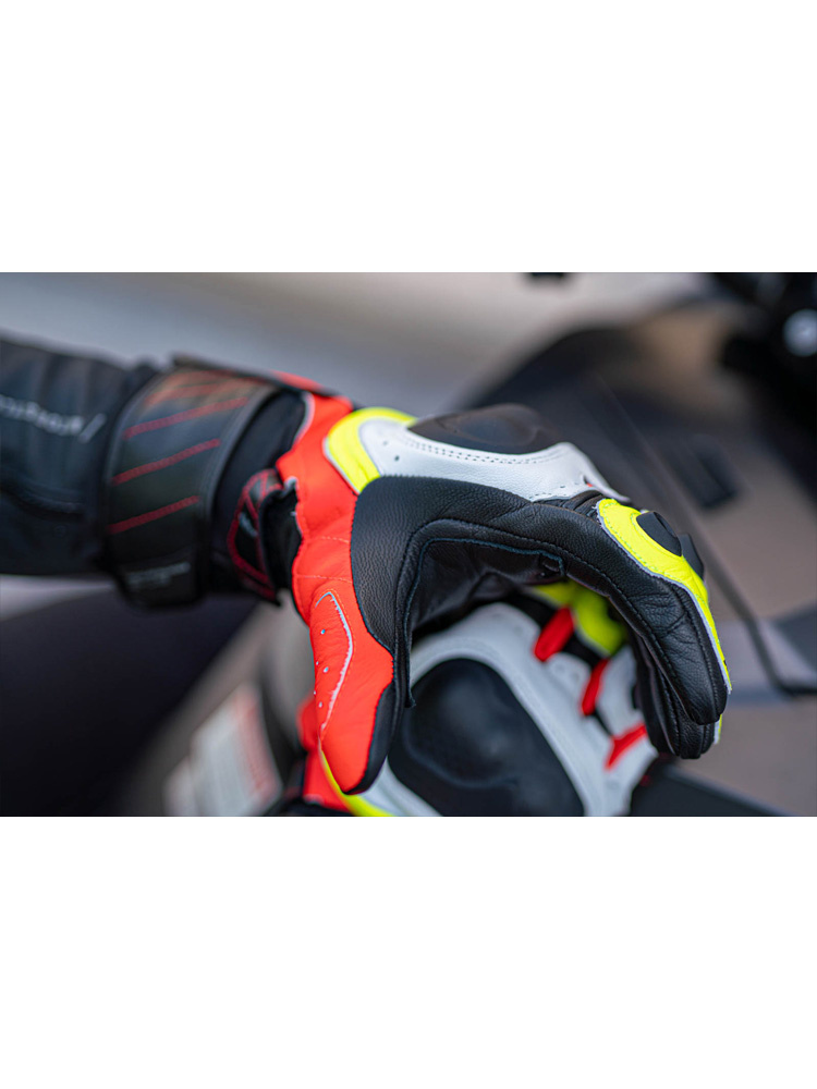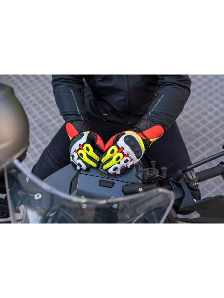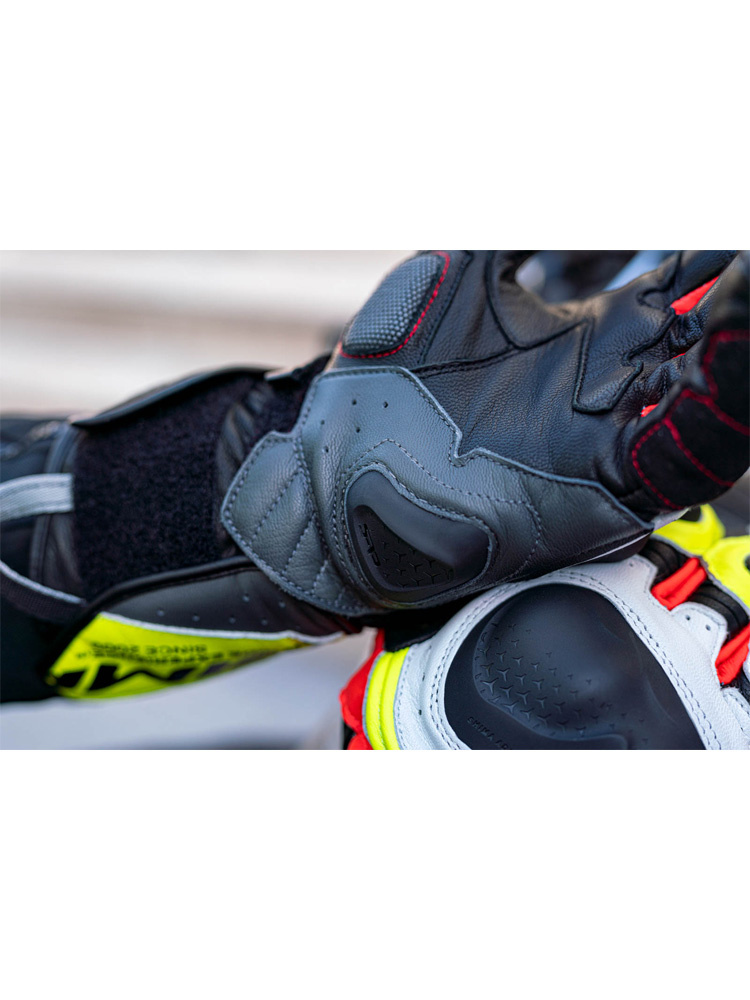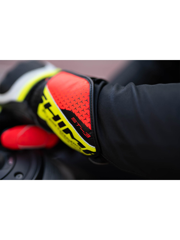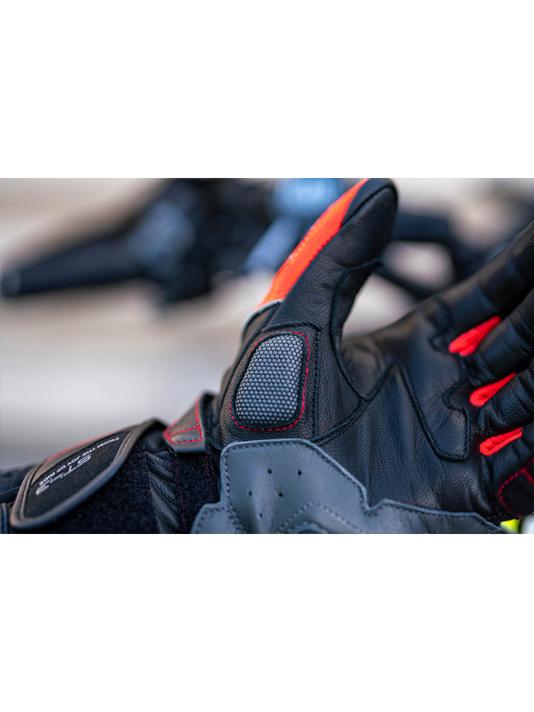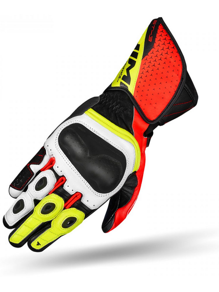 Rękawice motocyklowe Shima ST-3 zostały wykonane z najlepszej jakości przewiewnej perforowanej skóry. Dzięki temu zapewniają one idealną wentylację, która świetnie sprawdzi się podczas jazdy w cieplejsze dni. Elastyczne wstawki poprawiają mobilność. Kciuk wykonany w technologii GRIP+™ 3D to kolejna cecha, która wyróżnia rękawice Shima ST-3 na tle innych rękawic. Ta innowacyjna konstrukcja zapewnia idealne przyleganie do manetki motocykla, co w połączeniu z wstępnie zakrzywionymi palcami pozwala na jeszcze lepszą kontrolę nad pojazdem. Silikonowy nadruk po wewnętrznej stronie dłoni zapewnia świetną przyczepność i ochronę przed ślizganiem się dłoni na manetce. Zapięcie na rzep V-LOCK™ gwarantuje idealne dopasowanie do dłoni i zapobiegają przesuwaniu się rękawic podczas jazdy. Opatentowane protektory kostek i palców SAP™ oraz piankowy absorber Armor Plus zwiększają poziom bezpieczeństwa, zabezpieczając motocyklistę przed poważniejszymi urazami. Tkanina SUPERFABRIC® chroni przed ścieraniem, a skórzany panel na nadgarstku dodaje jeszcze większej wytrzymałości i stylu. Rękawice motocyklowe Shima ST-3 to połączenie wyjątkowej jakości wykonania, innowacyjnej konstrukcji i niezawodnej ochrony co czyni je wyjątkowym produktem na miarę swoich czasów.