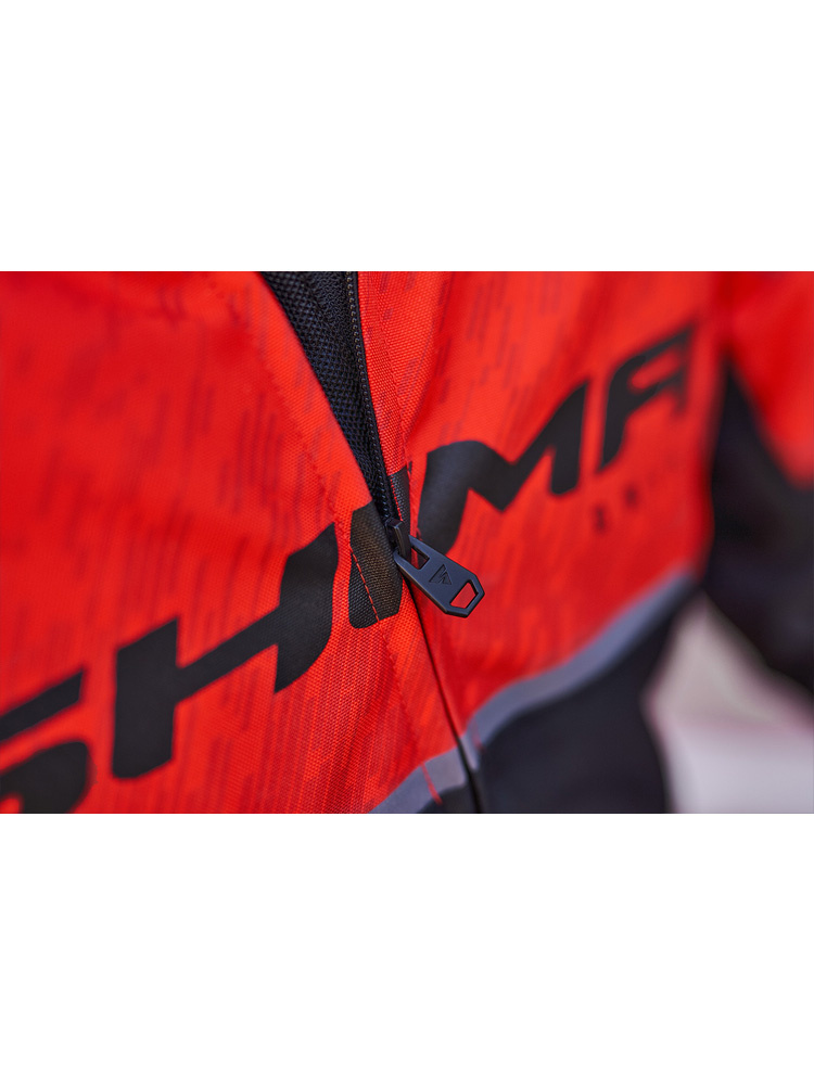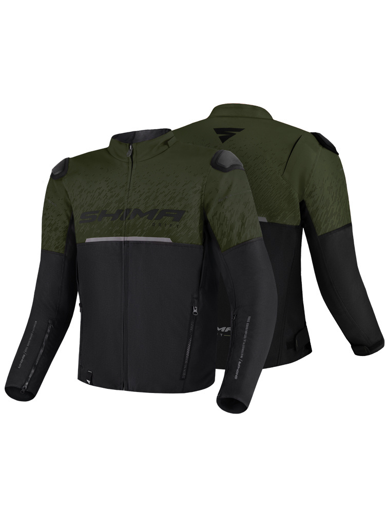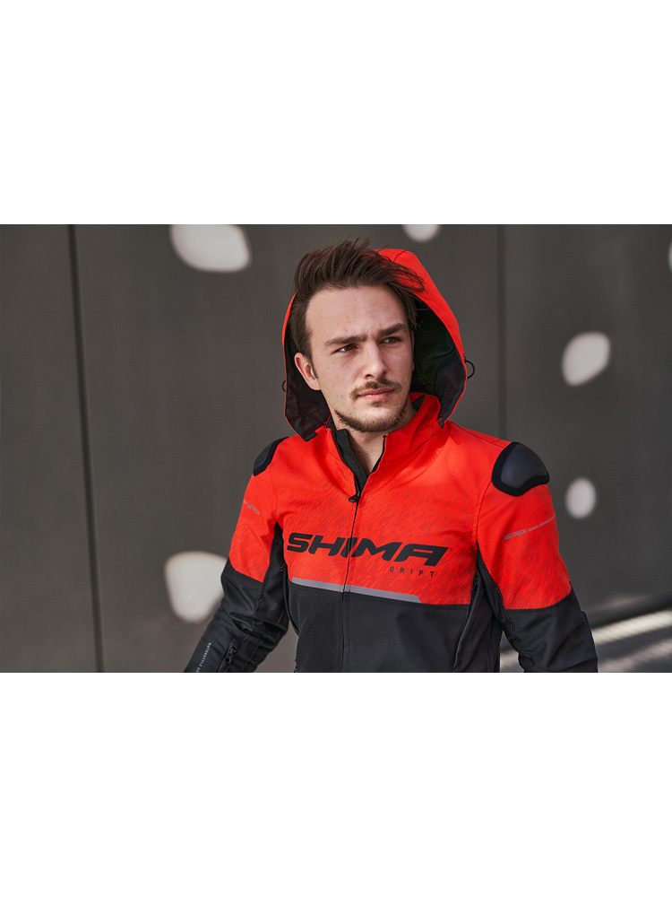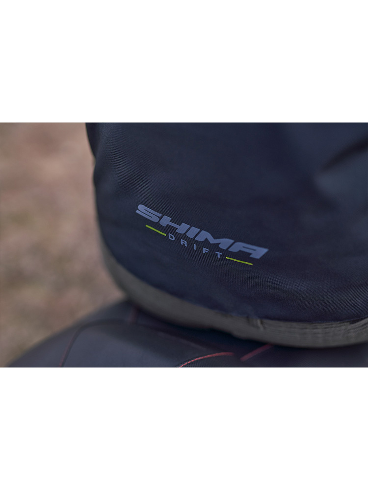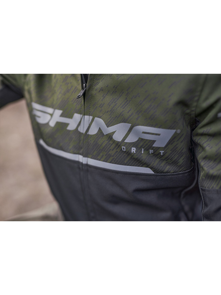 Shima Drift to lekka kurtka motocyklowa wyposażona w technologię które pozwalają na czerpanie niesamowitej przyjemności z jazdy. System wentylacji z otworami pod pachami, na przedramionach oraz na całej długości zamka głównego regulowany jest za pomocą suwaków pozwalających na swobodną regulację. Dzięki temu zastosowaniu kurtka dostarcza nam odpowiedniej ilości świeżego powietrza nawet podczas najcieplejszych letnich dni. Drift wyposażona została również w komplet certyfikowanych protektorów pleców, łokci oraz ramion które absorbują energię powstałą podczas uderzenia. Kurtka posiada również kieszeń na opcjonalny protektor klatki piersiowej (sprzedawany oddzielnie). Dodatkowym zabezpieczeniem na drodze są zewnętrzne slidery barków oraz obszerne odblaskowe panele, które zwiększają widoczność podczas jazdy nocą lub w kiepskich warunkach pogodowych. Regulacja w talii oraz przy rękawach pozwala na lepsze dopasowanie kurtki do sylwetki motocyklisty. System EvoLink przygotowuje kurtkę na zastosowanie w niej podpinki ocieplającej lub membrany. Kieszenie zewnętrzne oraz kaptur (sprzedawany oddzielnie) czyni ten model bardzo funkcjonalnym. W dolnej części kurtki umieszczony został zamek który umożliwia wygodne spięcie jej ze spodniami.