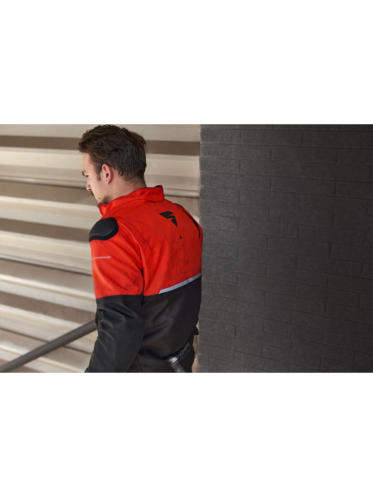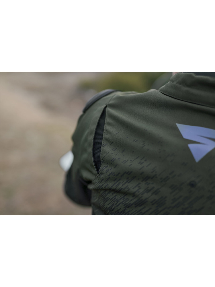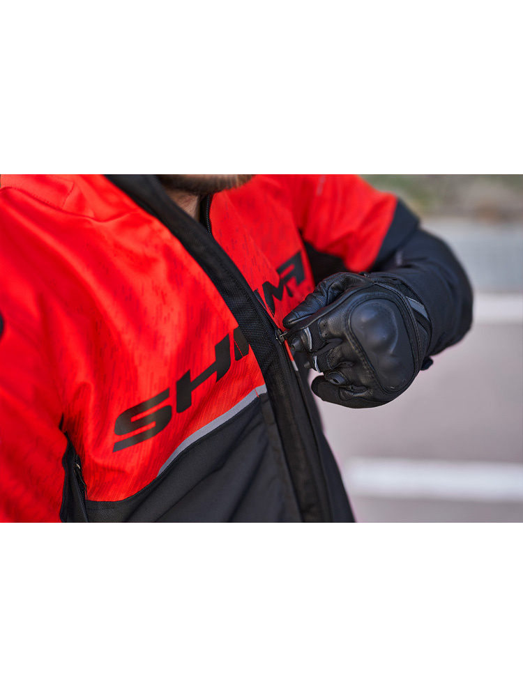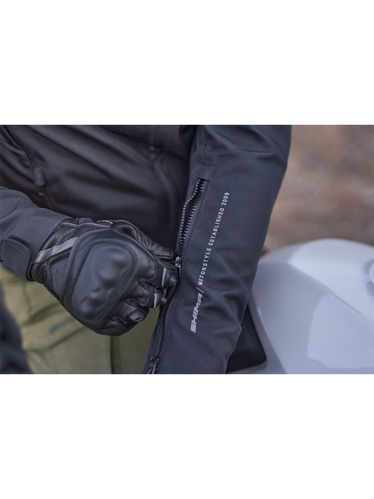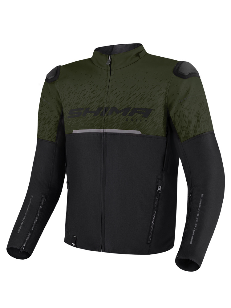 Shima Drift to lekka kurtka motocyklowa wyposażona w technologię które pozwalają na czerpanie niesamowitej przyjemności z jazdy. System wentylacji z otworami pod pachami, na przedramionach oraz na całej długości zamka głównego regulowany jest za pomocą suwaków pozwalających na swobodną regulację. Dzięki temu zastosowaniu kurtka dostarcza nam odpowiedniej ilości świeżego powietrza nawet podczas najcieplejszych letnich dni. Drift wyposażona została również w komplet certyfikowanych protektorów pleców, łokci oraz ramion które absorbują energię powstałą podczas uderzenia. Kurtka posiada również kieszeń na opcjonalny protektor klatki piersiowej (sprzedawany oddzielnie). Dodatkowym zabezpieczeniem na drodze są zewnętrzne slidery barków oraz obszerne odblaskowe panele, które zwiększają widoczność podczas jazdy nocą lub w kiepskich warunkach pogodowych. Regulacja w talii oraz przy rękawach pozwala na lepsze dopasowanie kurtki do sylwetki motocyklisty. System EvoLink przygotowuje kurtkę na zastosowanie w niej podpinki ocieplającej lub membrany. Kieszenie zewnętrzne oraz kaptur (sprzedawany oddzielnie) czyni ten model bardzo funkcjonalnym. W dolnej części kurtki umieszczony został zamek który umożliwia wygodne spięcie jej ze spodniami.
