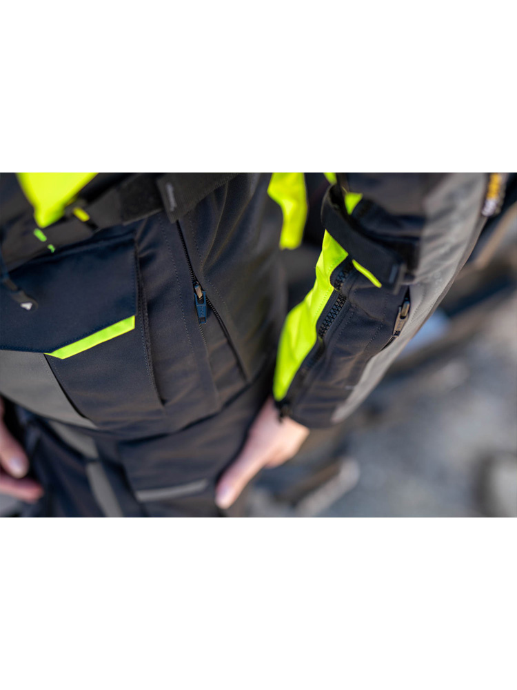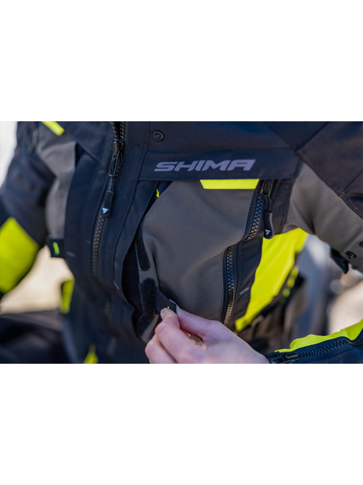 Shima Hero 2.0 to nowa odsłona motocyklowej kurtki tekstylnej, z szeregiem rozwiązań, które dają niezwykłą przewagę podczas ciężkich warunków atmosferycznych. Wyposażona została w wodoodporną i wiatroszczelną membranę NextDry zatrzymującą cząsteczki wody na powierzchni spodni, umożliwiając jednocześnie swobodny przepływ powietrza. Kolejną warstwą jest zapewniająca komfort termiczny w chłodniejsze dni podpinka ocieplająca, którą możemy wypiąć w każdej chwili. O bezpieczeństwo na drodze zadbają przewiewne protektory barków i łokci (poziom 2) oraz umieszczony w tylnej części ochraniacz pleców. Newralgiczne miejsca natomiast, zostały wzmocnione odpornym na przetarcia i przebicia materiałem Cordura. Dodatkowo liczne elementy odblaskowe, zwiększają widoczność podczas jazdy nocną porą, lub we mgle. Kurtka motocyklowa Shima Hero 2.0 wyposażona została, w rozbudowany system wentylacji z obszernymi panelami na plecach i przedramionach, w których możemy regulować przepływ powietrza przy pomocy zamków. Aby zwiększyć komfort podczas jazdy w kurtce znaleźć można elastyczne panele. Regulacja w talii, na ramionach i w nadgarstku gwarantuje precyzyjne dopasowanie. Umieszczone suwaki z tyłu, pozwolą na wygodne spięcie kurtki ze spodniami motocyklowymi Shima Hero 2.0.