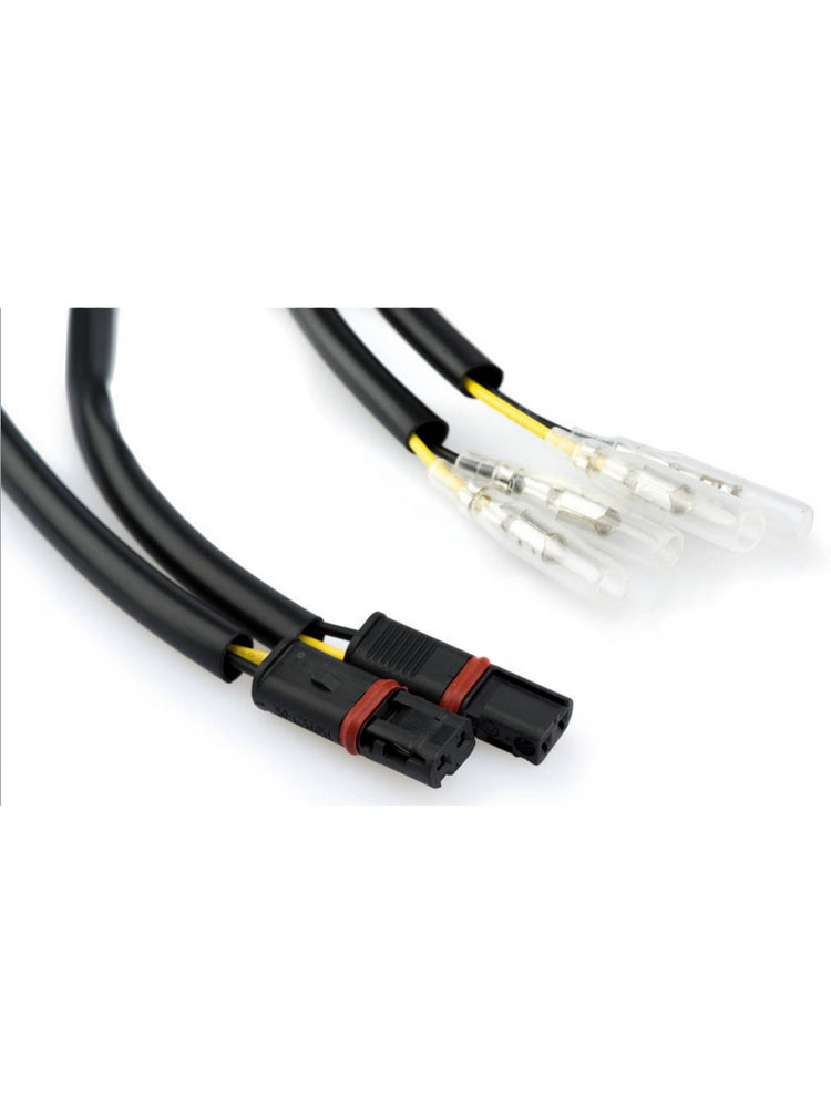 Zestaw umożliwia podłączenie jednego kompletu kierunków do kostki motocykla bez konieczności ingerencji w instalację elektryczną.