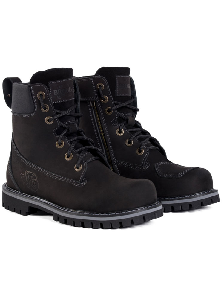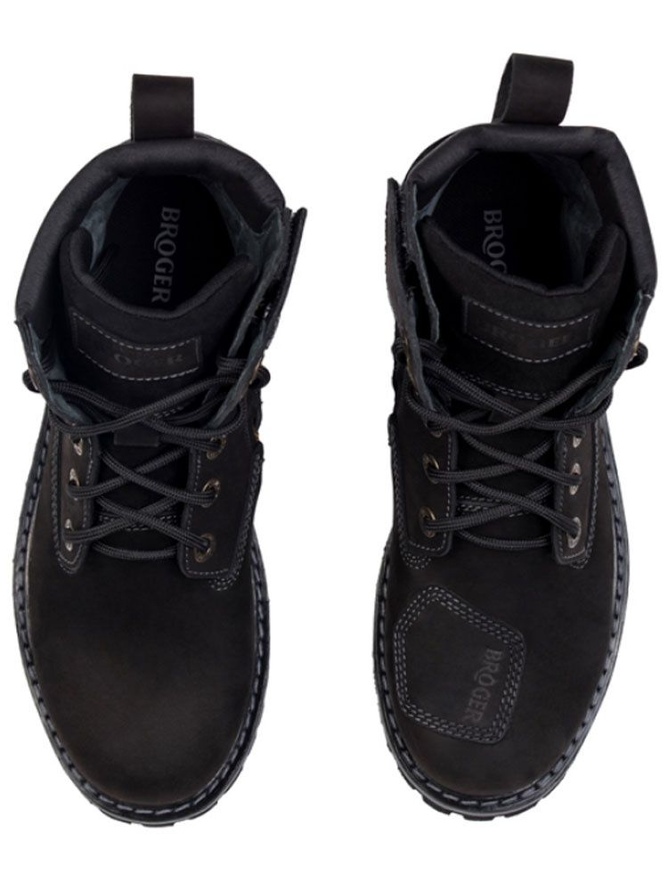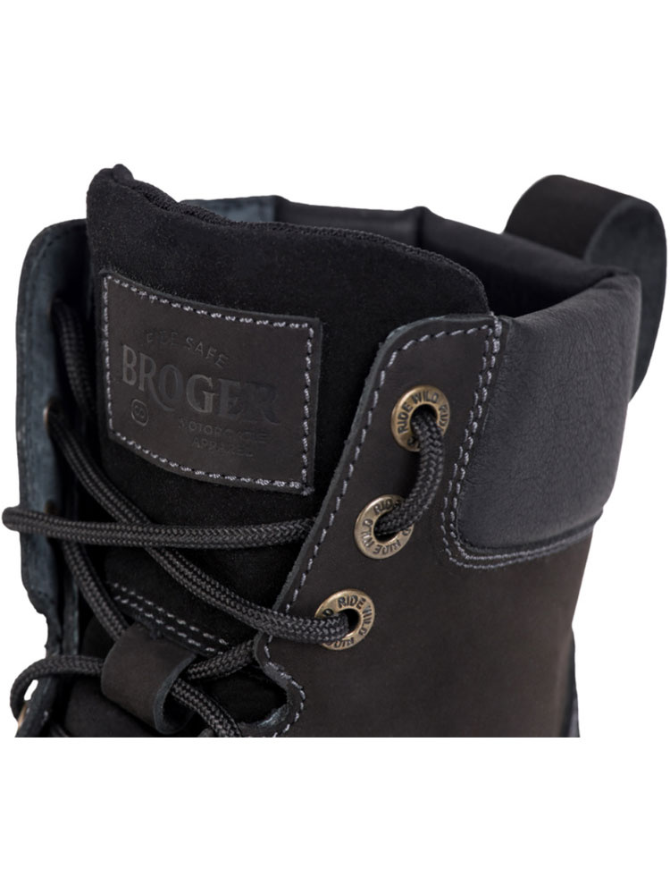 Broger Alaska II to eleganckie buty motocyklowe utrzymane w stylu popularnych „traperów” i wyposażone we wzmocnienia, które zapewniają wysoki poziom ochrony podczas jazdy. Cholewka wykonana została z najwyższej jakości skóry bydlęcej charakteryzującej się odpornością na przetarcia oraz przebicia. Jest również bardzo elastyczna dzięki czemu umożliwia pełną swobodę ruchu. Podwójne i potrójne przeszycia łączące materiały zwiększają żywotność obuwia a zamek z rzepem umieszczonym po wewnętrznej stronie buta oraz trwałe sznurowadła pozwalają na lepsze dopasowanie do indywidualnego użytkownika. W wewnętrznej części znajduje się miękka podszewka ze skóry oraz wkładka Ortholite, która tłumi drgania i zapewnia wysoki komfort termiczny dzięki pokryciu z poliestrowego meshu. Niezwykła podeszwa ze zintegrowaną wstawką zapewnia wysoki poziom bezpieczeństwa, chroniąc stopę przed nagłym ześlizgnięciem się z podnóżka. Twarda i sztywna konstrukcja nie przeszkadza jednak w swobodnym poruszaniu się poza motocyklem. Wyjątkowa ochrona w postaci absorbującego energię uderzenia protektora SAS-TEC, wzmocnień na pięcie, jak i usztywnienia palców chroni najbardziej newralgiczne miejsca zapobiegając powstawaniu trwałych urazów. Przednia część cholewki wyposażona została we wzmocnienie ułatwiające operowanie dźwignią zmiany biegów. Buty Alaska II dostępne są w rozmiarach 36-50.