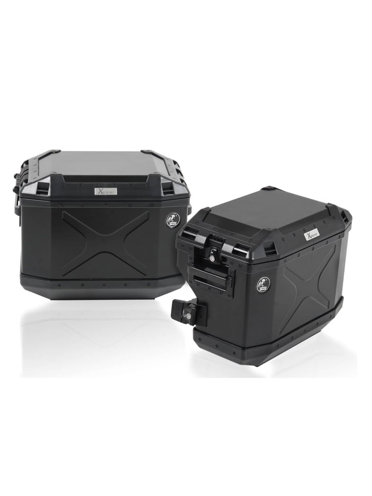 - zestaw kufrów bocznych Xplorer Cutout wraz ze stelażem bocznym (na prawą i lewą stronę) ze stali nierdzewnej,