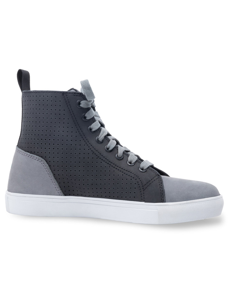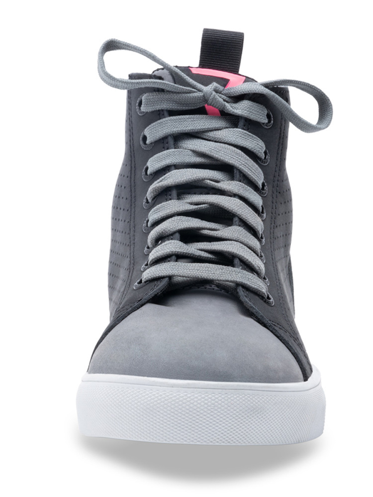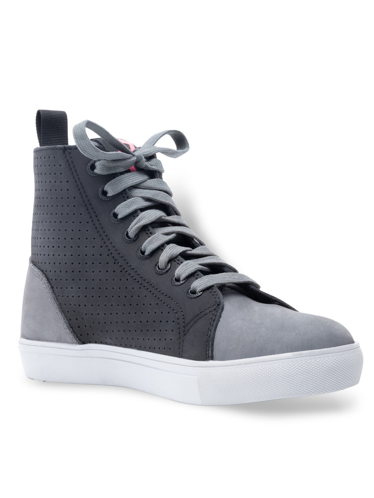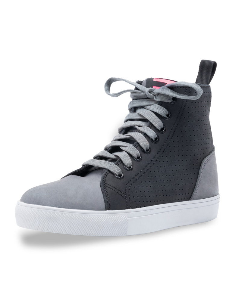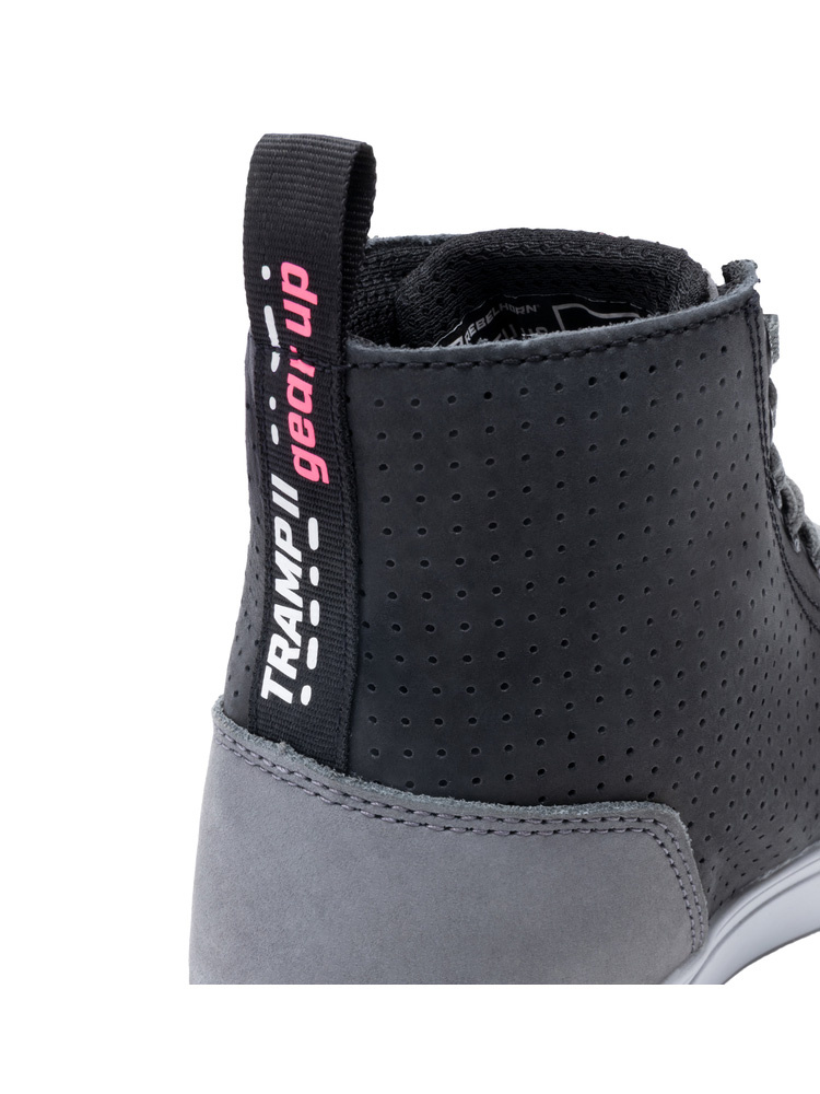To, co wyróżnia nowe buty motocyklowe damskie Tramp II to bogata kolorystyka oraz niebywały komfort noszenia. Cywilnie wyglądające buty są świetną opcją dla osób, które na co dzień poruszają się po mieście motocyklem. Bez większego problemu wygodnie spędzisz w nich cały dzień czy to na spacerze, czy w pracy. Do ich uszycia producent wykorzystał odporna na uszkodzenia skórę bydlęcą. Dla zwiększenia komfortu dodano liczną perforację, która pozwala na dopływ chłodnego powietrza. Oddychająca podszewka wspomaga proces odprowadzenia wilgoci, a piankowa wkładka amortyzuje drgania powstające podczas jazdy. O solidnej konstrukcji butów świadczą podwójne i potrójne szwy zastosowane w wielu miejscach. W razie upadku ochronę gwarantują twarde ochraniacze kostek oraz wzmocniony obszar palców i pięty. Dodatkowa warstwa skóry umieszczona została w obszarze styku buta z dźwignią zmiany biegów. Wzmocniona, gumowa podeszwa zapewnia solidne wsparcie stopie nie tylko podczas jazdy motocyklem, ale także po zejściu z niego. Klasyczny system sznurowania zapewnia wygodne zakładanie i zdejmowania obuwia, a także stabilne trzymanie kostki.