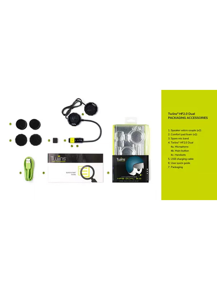Zestaw słuchawkowy Twiins HF2 Dual 5.0 do kasku motocyklowego, mocowany na rzep