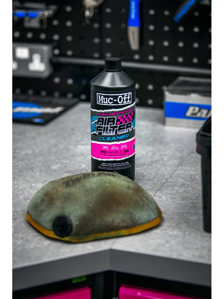 Muc-Off Air Filter Cleaner to najnowocześniejszy, profesjonalny, biodegradowalny środek czyszczący, który czyści i pielęgnuje filtr. Szybko rozkłada najbardziej lepkie oleje, tłuszcze i najgorsze zabrudzenia ze wszystkich piankowych filtrów powietrza. To bezproblemowy sposób na szybkie czyszczenie filtra piankowego i maksymalizację mocy silnika. Unikalna kombinacja aktywnych składników została opracowana tak, aby przedzierać się przez brud i olej bez uszkadzania pianki lub kleju.