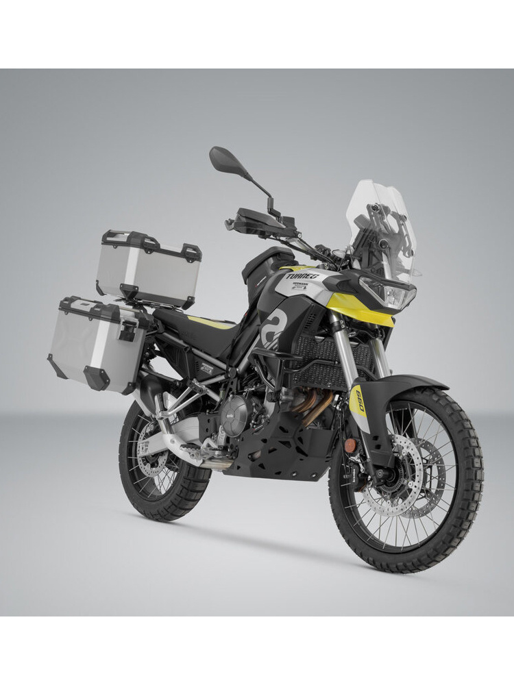 Zestaw: kufry boczne + kufer centralny + stelaże TRAX ADV do motocykla Aprilia Tuareg 660 (21-)/ Rally (24-) [całkowita pojemność: 150l] srebrny