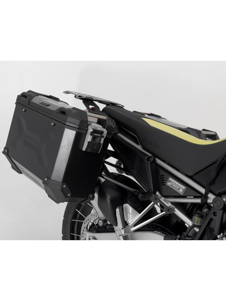 Zestaw: kufry boczne + kufer centralny + stelaże TRAX ADV do motocykla Aprilia Tuareg 660 (21-)/ Rally (24-) [całkowita pojemność: 150l] czarny