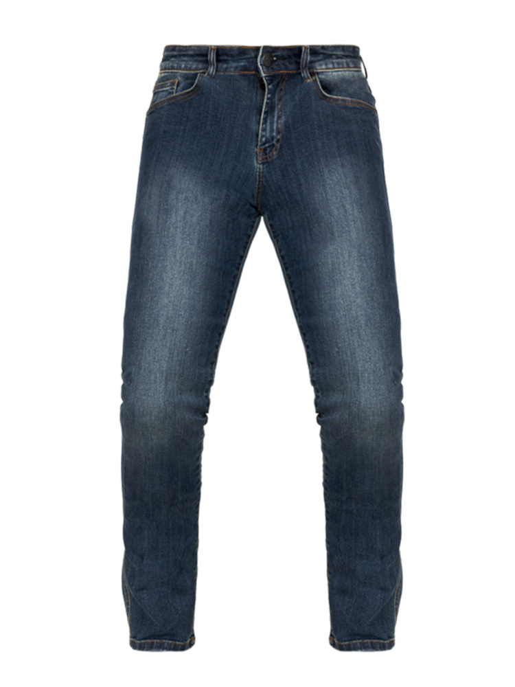 Broger California Lady to dopasowane do sylwetki jeansy ze zwężanymi nogawkami. Posiadają krój slim fit, a dzięki całkowicie wypinanej warstwie wewnętrznej z włókna aramidowego staną się zwykłymi, codziennymi jeansami. Spodnie zrobione są z tkaniny denim co zapewnia wygodę oraz bezpieczeństwo użytkowania. Aby zapewnić najwyższe możliwe bezpieczeństwo, ochraniacze w jeansach są stworzone z elastomerowej pianki SAS-TEC® świetnie absorbującej energię podczas uderzenia. Widoczność na drodze zapewniają odblaskowe elementy, które możemy ukryć lub zostawić widoczne podwijając nogawki.
