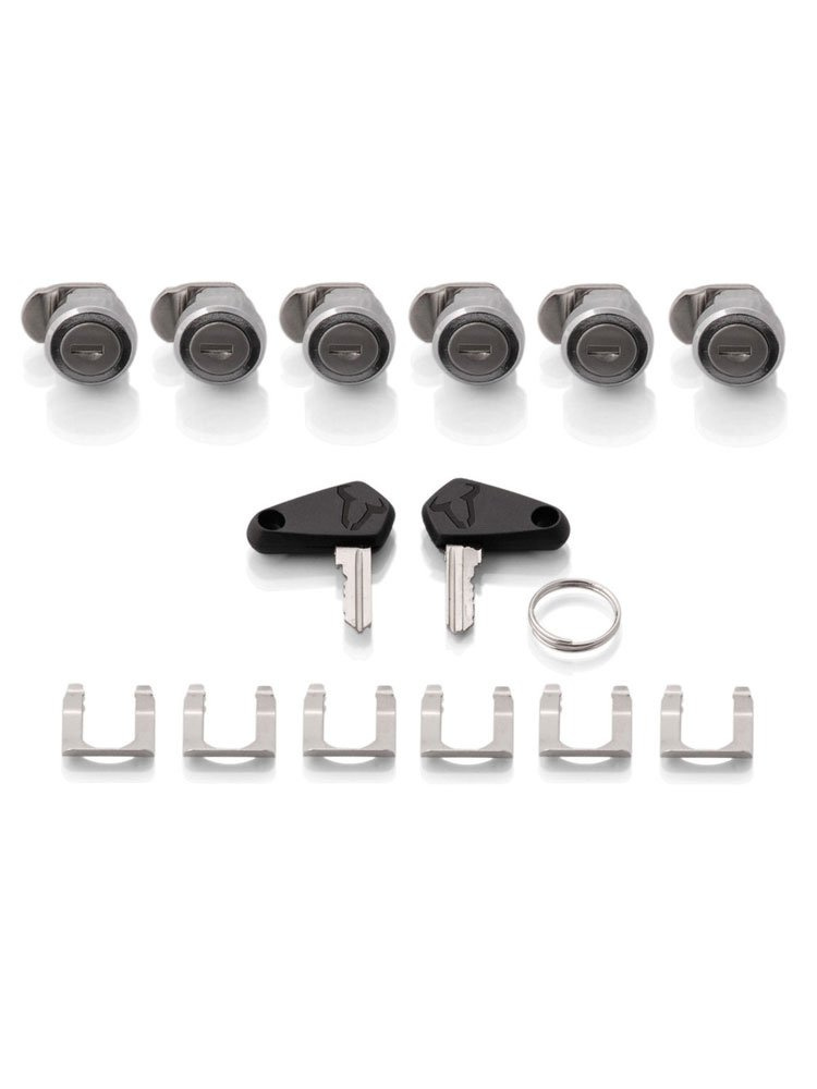 - Sześć zamków z dwoma kluczykami (dwa zamki do pokryw plus dwa zamki do zablokowania kufra na stelażu oraz dwa rezerwowe w przypadku instalacji kufra centralnego),