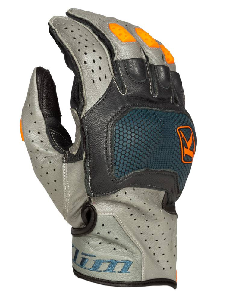 Rękawice motocyklowe Klim Badlands Aero Pro Short szaro-pomarańczowo-niebieskie