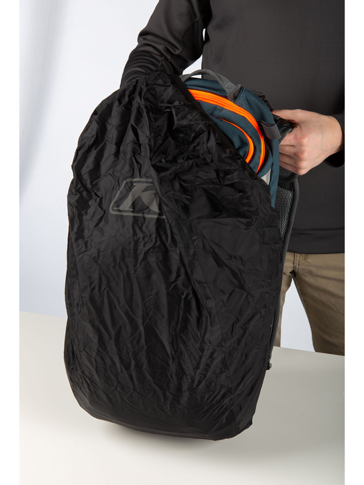 - Wodoodporny pokrowiec umieszczony w kieszeni na spodzie plecaka