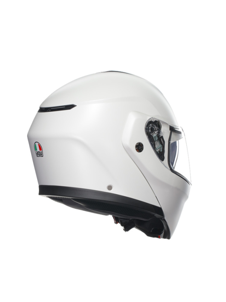 AGV Streetmodular to szczękowy kask motocyklowy, który sprawi, że podróże motocyklowe wskoczą na zupełnie inny poziom. Cała konstrukcja wyróżnia się solidnością i wytrzymałością, dzięki zastosowaniu tworzywa termoplastycznego HIR-TH (High Resistance Thermoplastic). W aspekcie bezpieczeństwa warto również wspomnieć o tym, że w wewnętrznej części kasku znajdziemy piankę EPS dostępną w trzech rozmiarach. Pozostając przy temacie wnętrza kasku szczękowego Streetmodular należy wspomnieć o antybakteryjnej wyściółce 2Dry, która odpowiada za optymalne odprowadzanie wilgoci. Ponadto jest ona w pełni wyjmowana, dzięki czemu w łatwy sposób można ją poddać procesowi prania. Istotnym elementem tego modelu jest odporny na zarysowania (powłoka Anti-Scratch) wizjer, który przystosowano do montażu Pinlocka (dostępny w zestawie). Za pomocą mechanizmu XQRS (Extra Quick Release System) szybkę można błyskawicznie wymienić bez użycia narzędzi, a cały proces potrwa zaledwie kilka sekund. Projektanci kasku pomyśleli również o podróżowaniu motocyklem w słoneczne dni, dlatego w tym modelu znajdziemy również blendę przeciwsłoneczną. W kasku szczękowym AGV Streetmodular mamy do czynienia z zapięcie mikrometrycznym, które jest bardziej znane pod nazwą MicroLock.