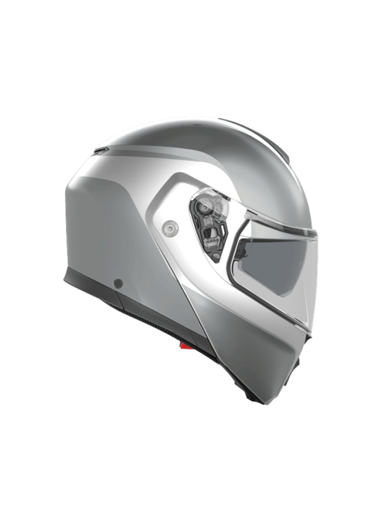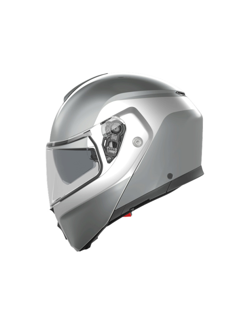 AGV Streetmodular to szczękowy kask motocyklowy, który sprawi, że podróże motocyklowe wskoczą na zupełnie inny poziom. Cała konstrukcja wyróżnia się solidnością i wytrzymałością, dzięki zastosowaniu tworzywa termoplastycznego HIR-TH (High Resistance Thermoplastic). W aspekcie bezpieczeństwa warto również wspomnieć o tym, że w wewnętrznej części kasku znajdziemy piankę EPS dostępną w trzech rozmiarach. Pozostając przy temacie wnętrza kasku szczękowego Streetmodular należy wspomnieć o antybakteryjnej wyściółce 2Dry, która odpowiada za optymalne odprowadzanie wilgoci. Ponadto jest ona w pełni wyjmowana, dzięki czemu w łatwy sposób można ją poddać procesowi prania. Istotnym elementem tego modelu jest odporny na zarysowania (powłoka Anti-Scratch) wizjer, który przystosowano do montażu Pinlocka (dostępny w zestawie). Za pomocą mechanizmu XQRS (Extra Quick Release System) szybkę można błyskawicznie wymienić bez użycia narzędzi, a cały proces potrwa zaledwie kilka sekund. Projektanci kasku pomyśleli również o podróżowaniu motocyklem w słoneczne dni, dlatego w tym modelu znajdziemy również blendę przeciwsłoneczną. W kasku szczękowym AGV Streetmodular mamy do czynienia z zapięcie mikrometrycznym, które jest bardziej znane pod nazwą MicroLock.