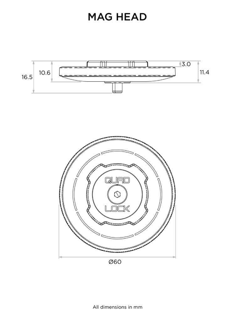 - kompatybilna z samochodowym uchwytem Quad Lock (QLM-CAR-5), uchwytem na biurko Quad Lock (QLM-DSK-2) oraz z wszystkimi uchwytami Quad Lock 360 (wcześniejsze wersje uchwytów wymagają specjalnego adaptera (QLP-MAG-IGA),