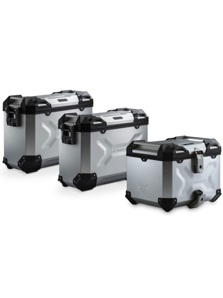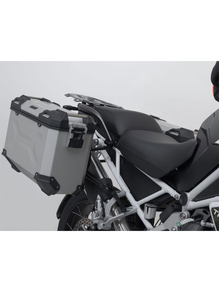 Zestaw: kufry boczne 45/37L + kufer centralny 38L TRAX ADV+ stelaże SW-MOTECH do motocykla Tiger 1200 Rally /GT Explorer (22-) srebrne