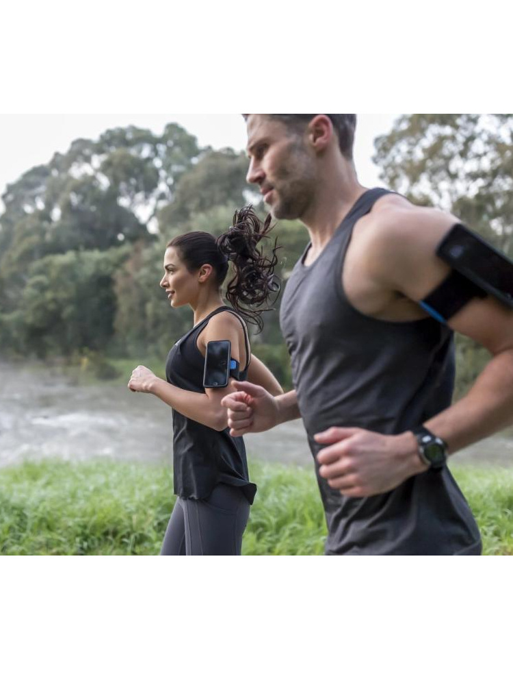 - opatentowana dwustopniowa blokada sprawia, że smartfon jest lekko uniesiony nad opaską, dzięki czemu nie ma tarcia między ramieniem a smartfonem