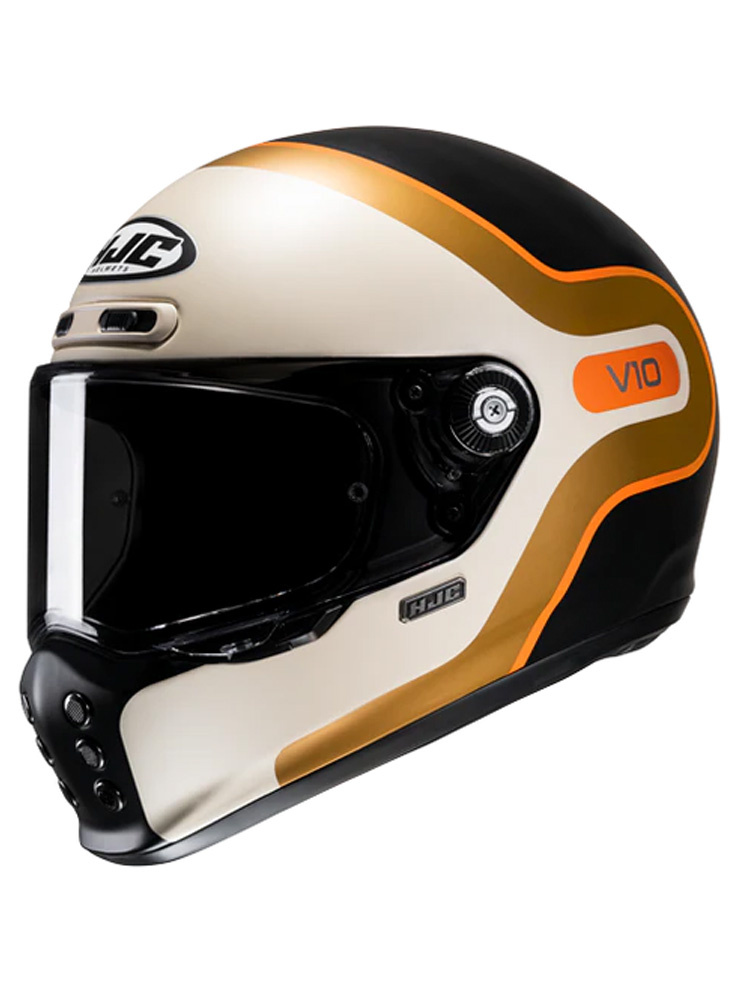 HJC V10 to zaprojektowany od podstaw kask integralny, który przypadnie do gustu motocyklistom, ceniącym sobie jakość i bezpieczeństwo. Oferuje lekkość, bezpieczeństwo oraz idealne dopasowanie, dzięki skorupie kasku wykonanej z dobrze znanego włókna szklanego. Dużym atutem tego modelu jest panoramiczny wizjer, posiadający powłokę Anti-Scratch oraz filtr UV, który zabezpiecza użytkownika przed szkodliwym promieniowaniem ultrafioletowym. Za sprawą systemu Easy Attachment wizjer w prosty sposób możemy zdemontować bez konieczności stosowania dodatkowych narzędzi zewnętrznych. Na uwagę zasługuje również wydajny system wentylacji ACS, składający się z rozmieszczonych strategicznie otworów wentylacyjnych. Wewnętrzna wyściółka oraz wkładki policzkowe zostały wykonane z antybakteryjnego materiału, który w optymalny sposób odprowadza pot i wilgoć na zewnątrz. Kask integralny HJC V10 przystosowany jest do jazdy w okularach. Doskonale się sprawdzi w grupowych wycieczkach motocyklowych, dzięki możliwości montażu interkomu HJC Smart II (sprzedawany oddzielnie).