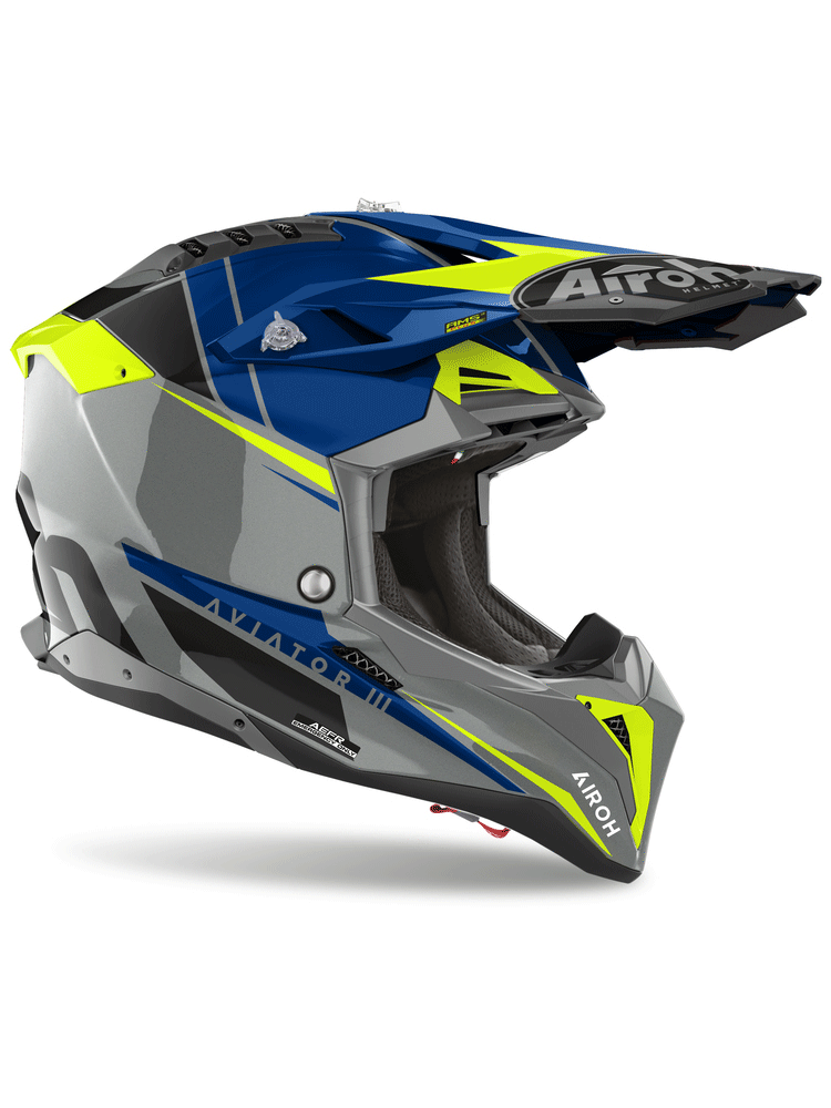 Kask enduro Airoh Aviator 3 Push szaro-niebiesko-żółty